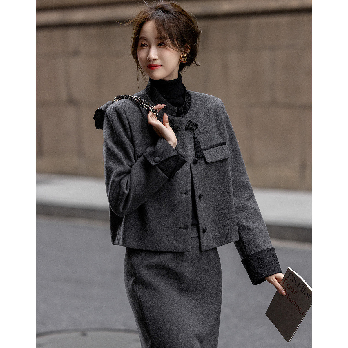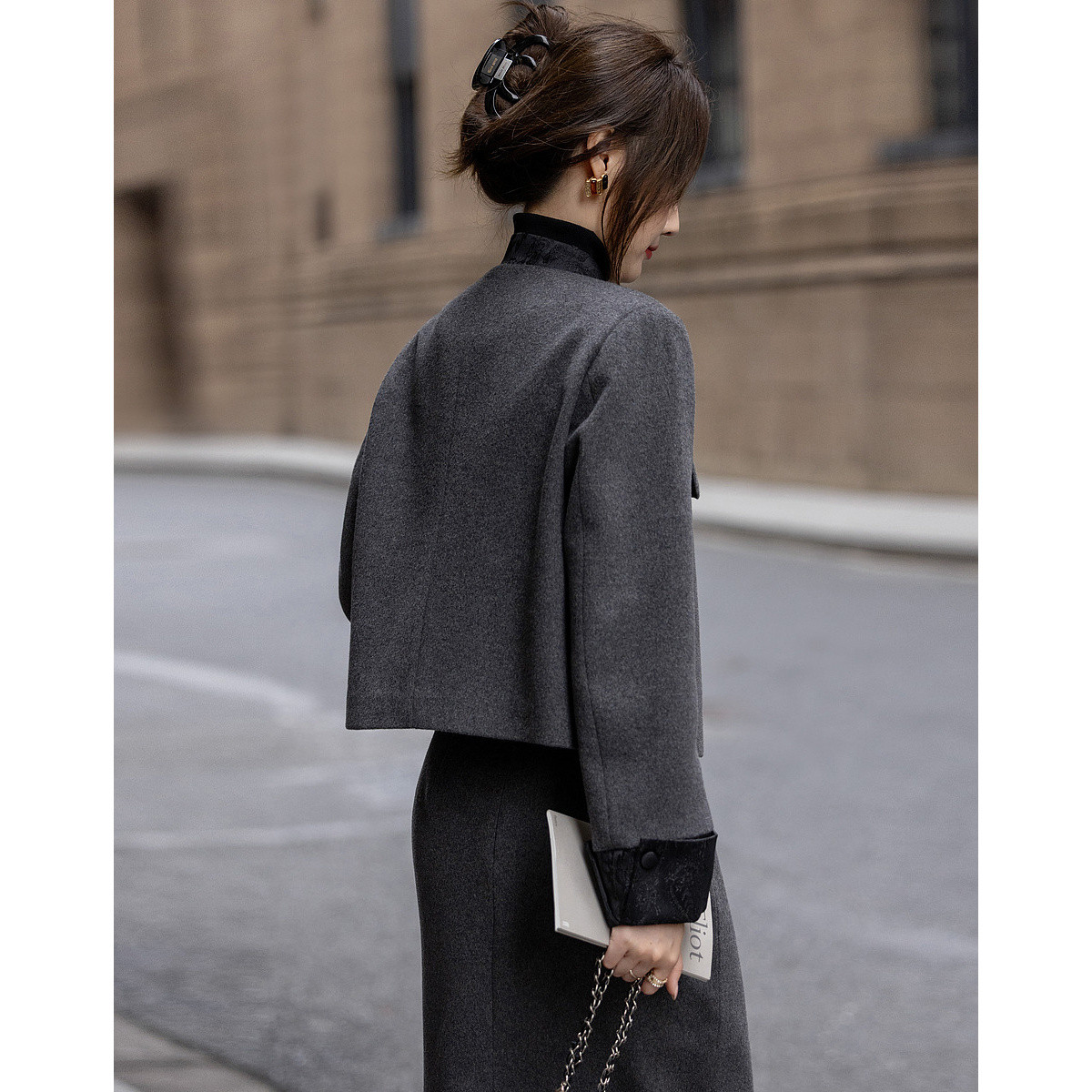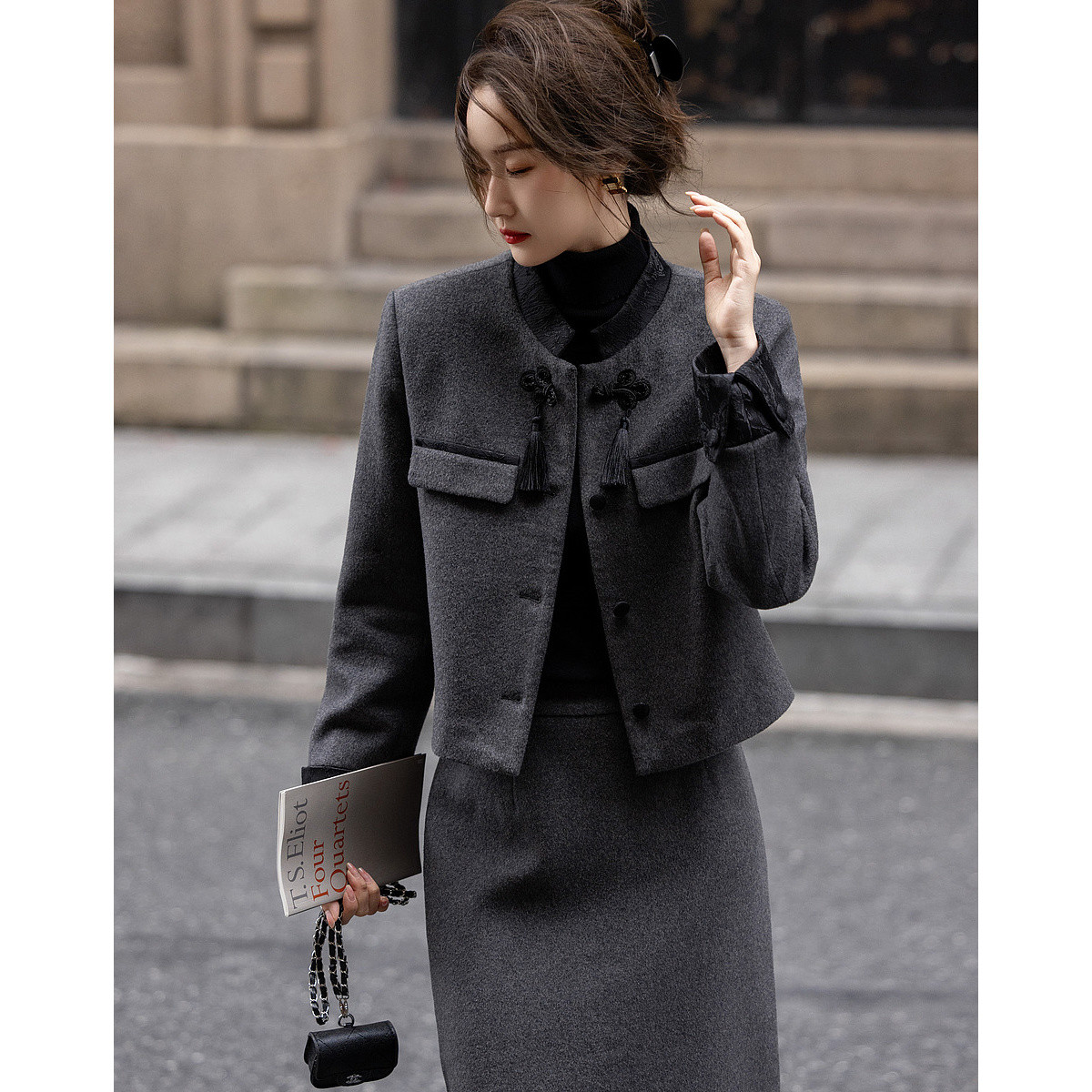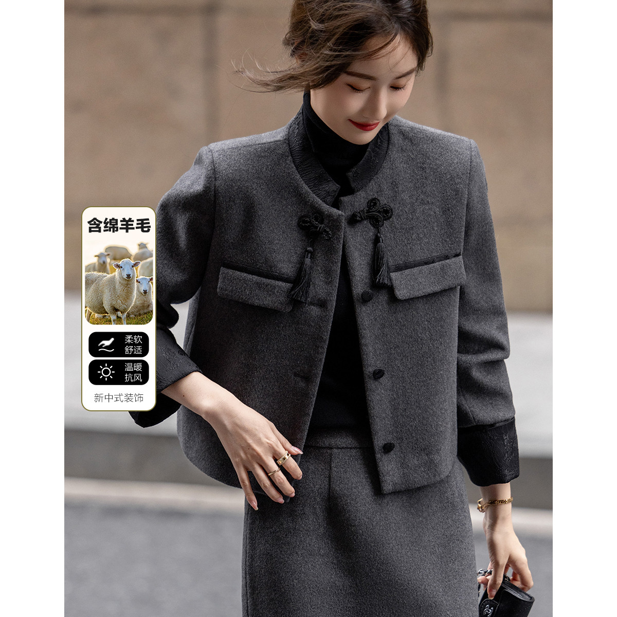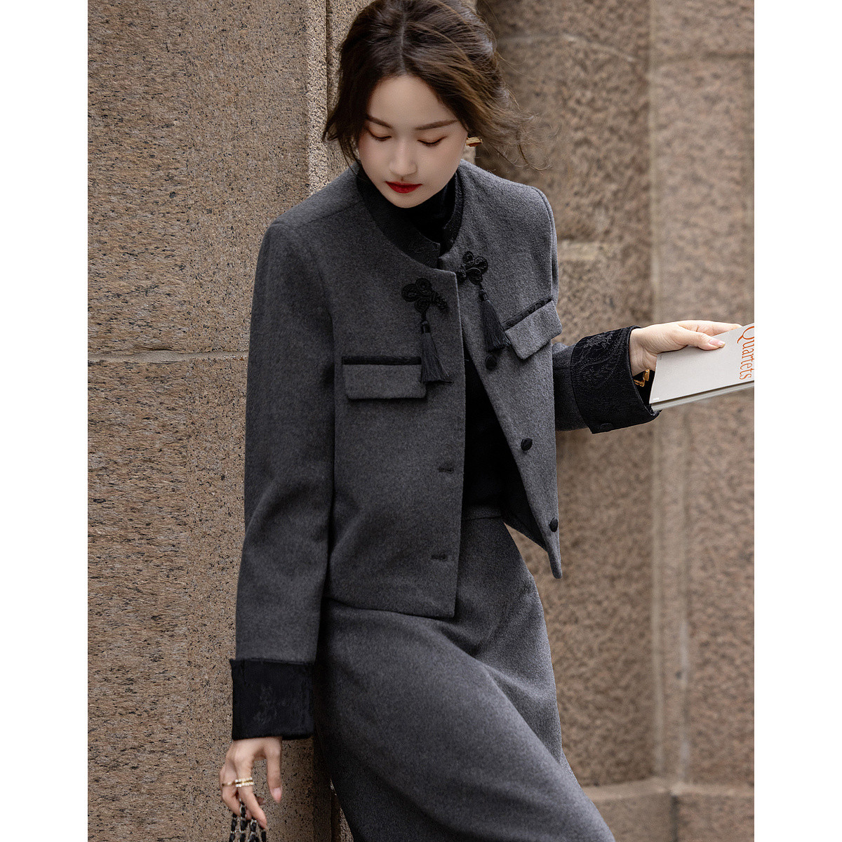 【会呼吸的绵羊毛】24冬季国风新中式顺毛呢盘扣翻边大衣女外套