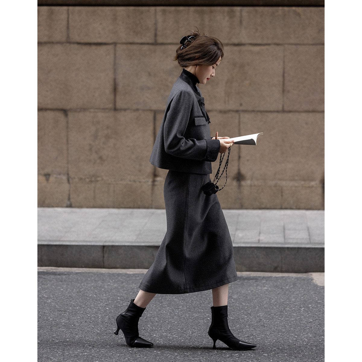 【闪亮的浪漫】秋季含绵羊毛亮片针织套装V领上衣半裙女式两件套