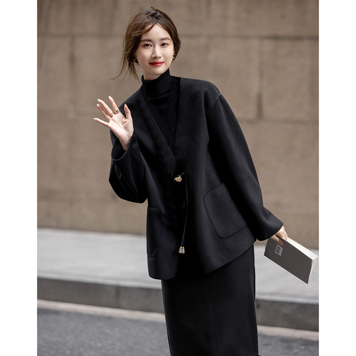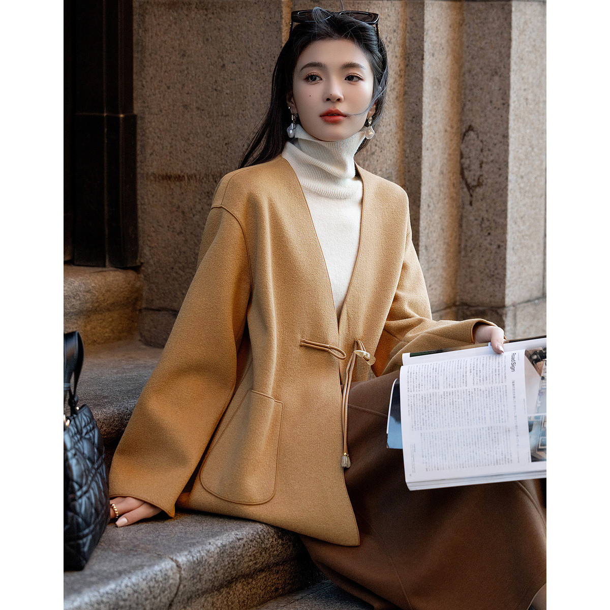 【墨雨云间】24冬款国风新中式牛角扣挂绳松弛A字好搭女式外套