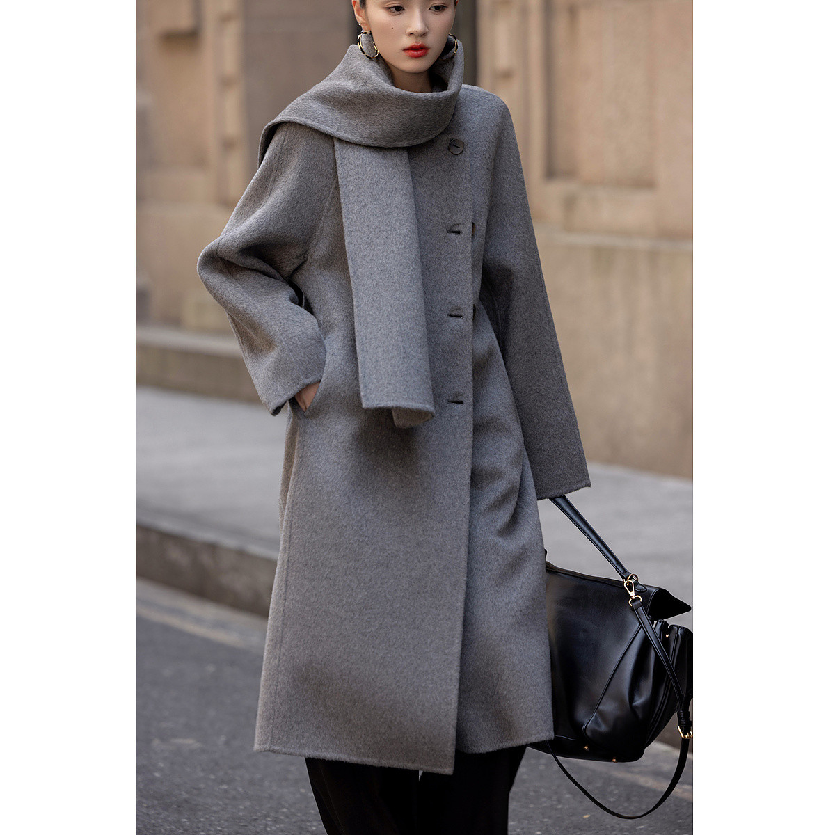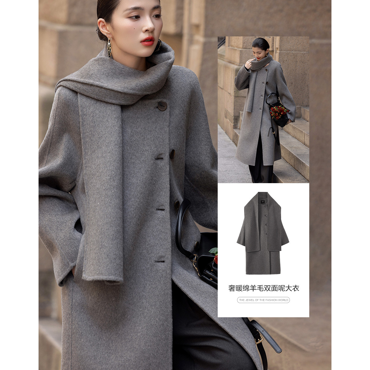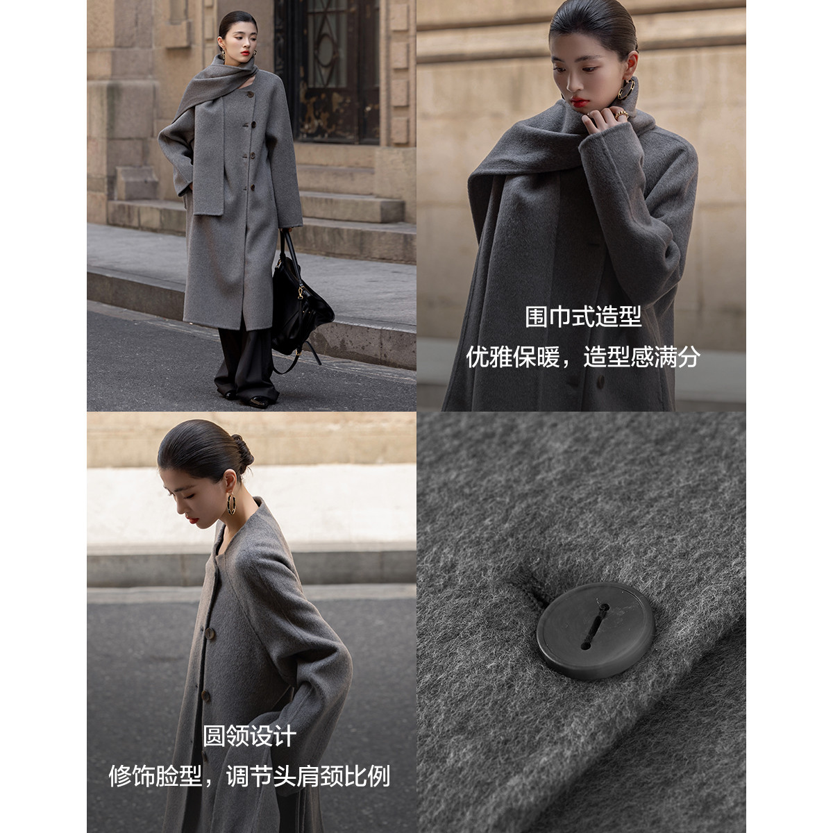 【轻盈衣橱】冬季静奢老钱围巾式绵羊毛高保暖舒适藏肉好搭长外套