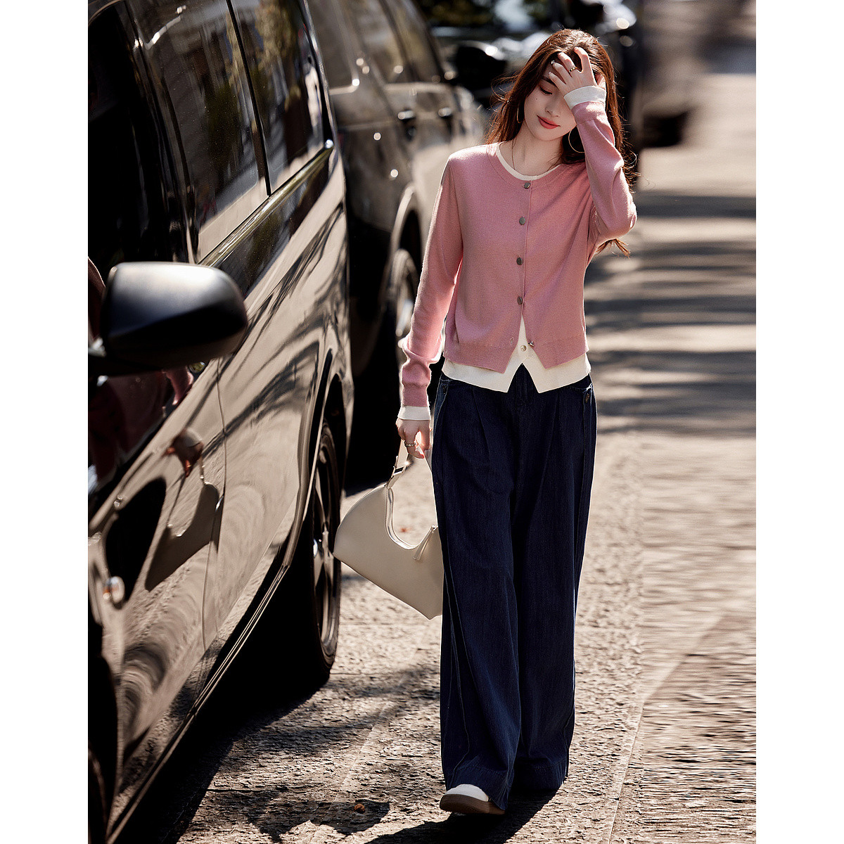 【静奢灵感衣橱】春秋设计感假两件撞色线衫装饰扣针织衫女上衣