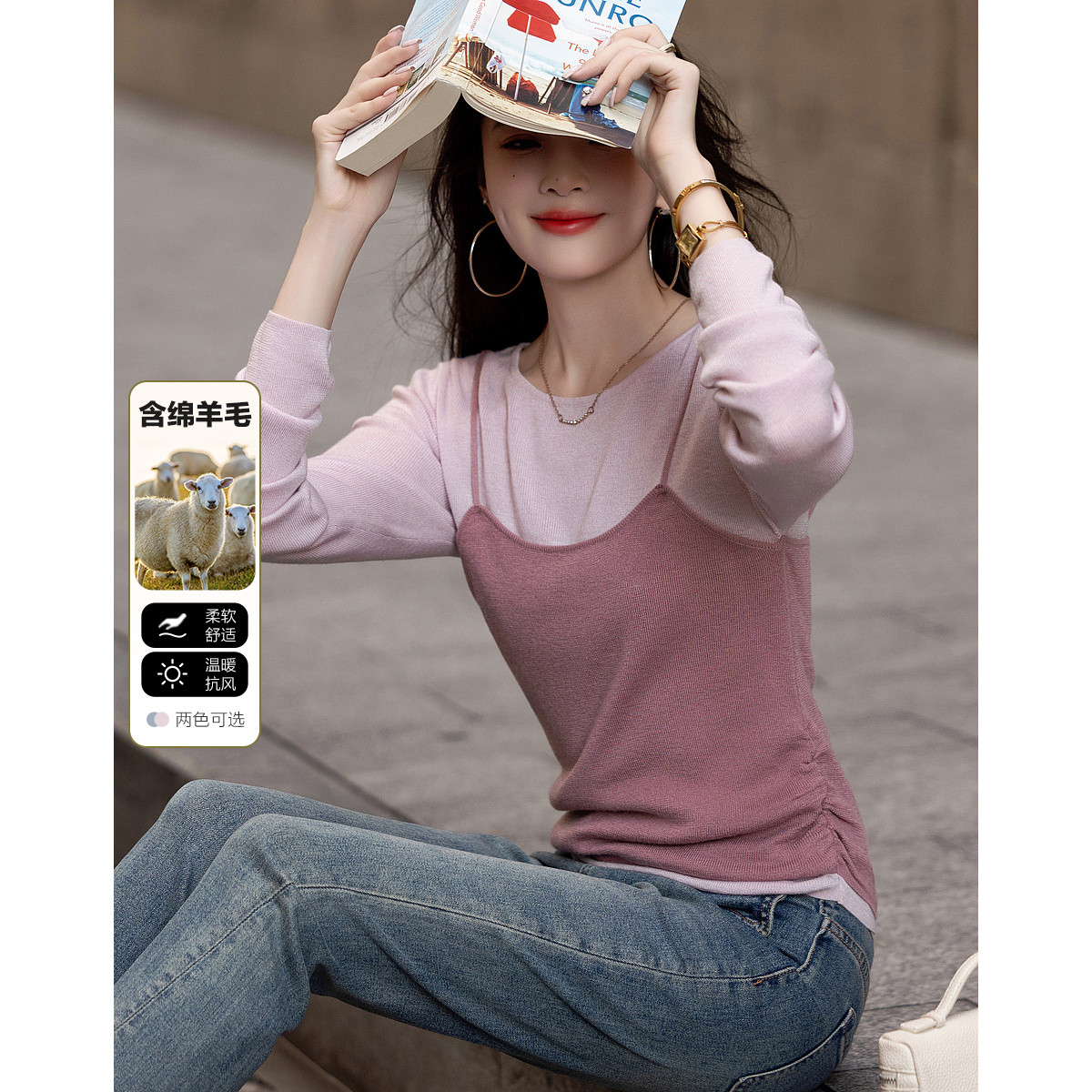 【树莓马卡龙】春少女感假两件含绵羊毛线衫轻龄针织衫女上衣