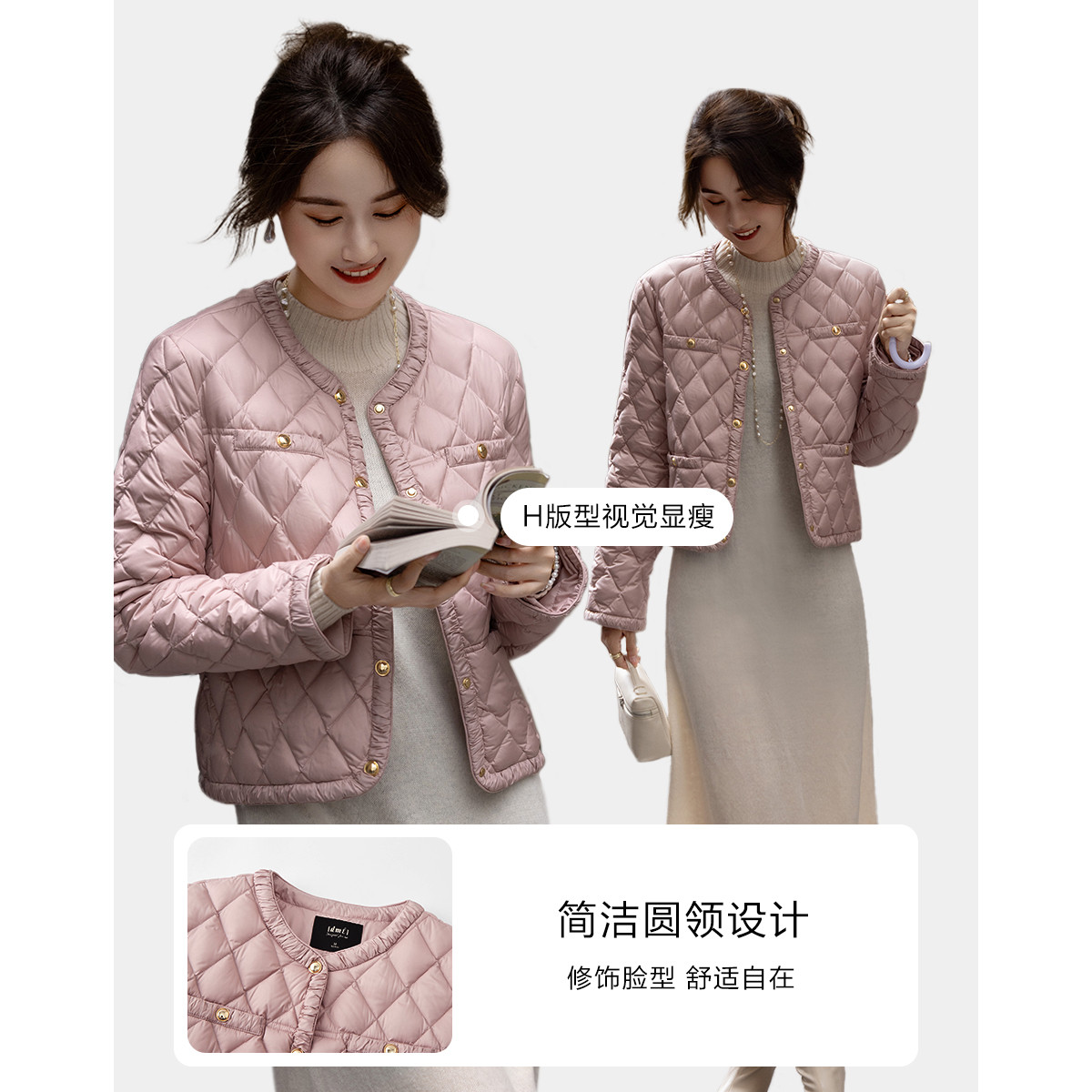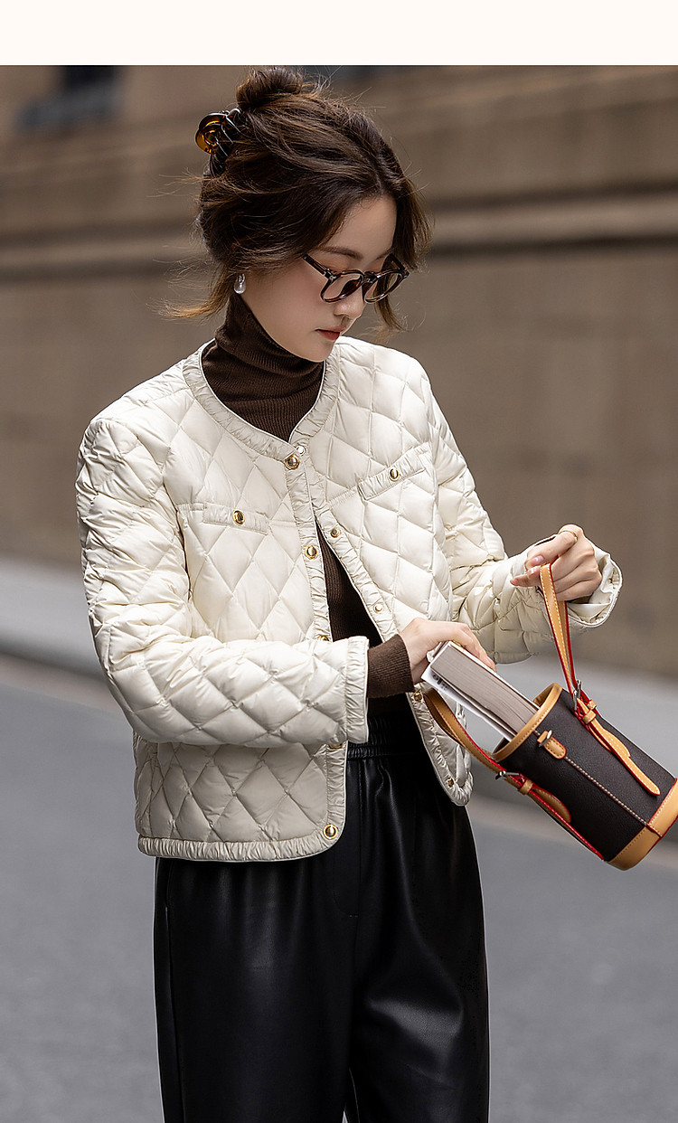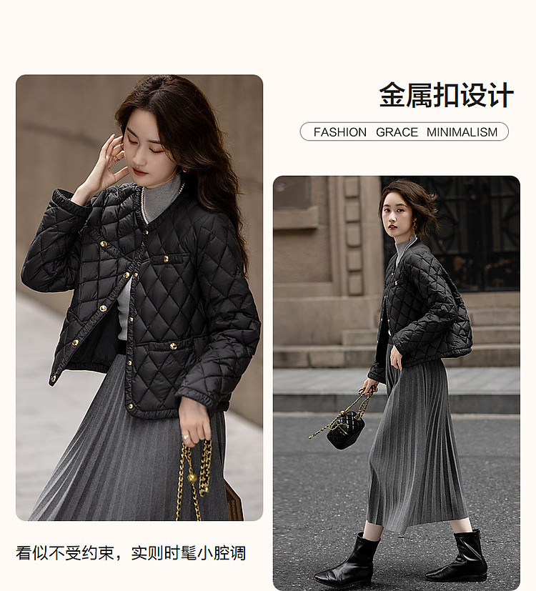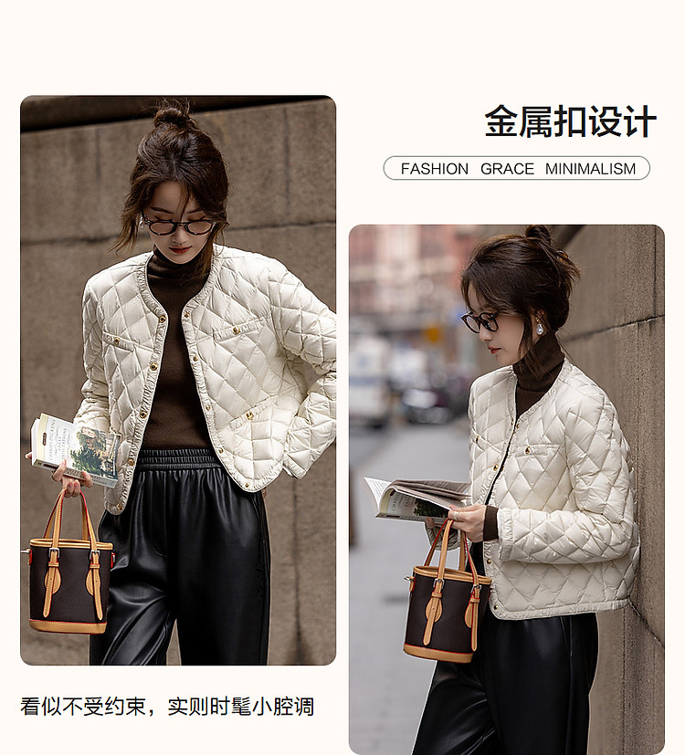 【千金玛德琳】24冬小香风轻薄云朵90鸭绒粗花呢遮肉羽绒服女