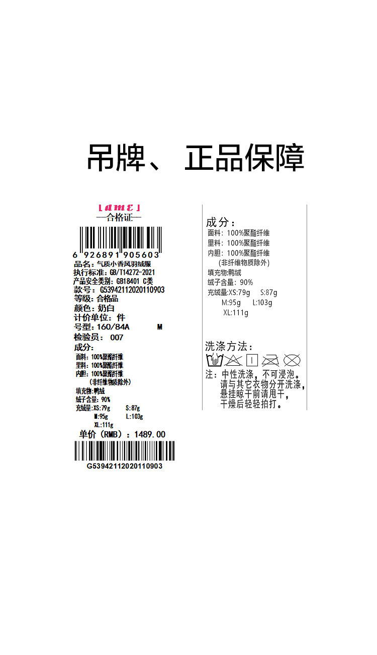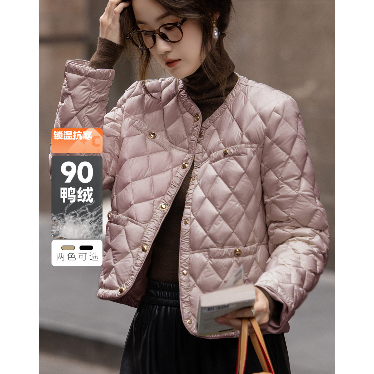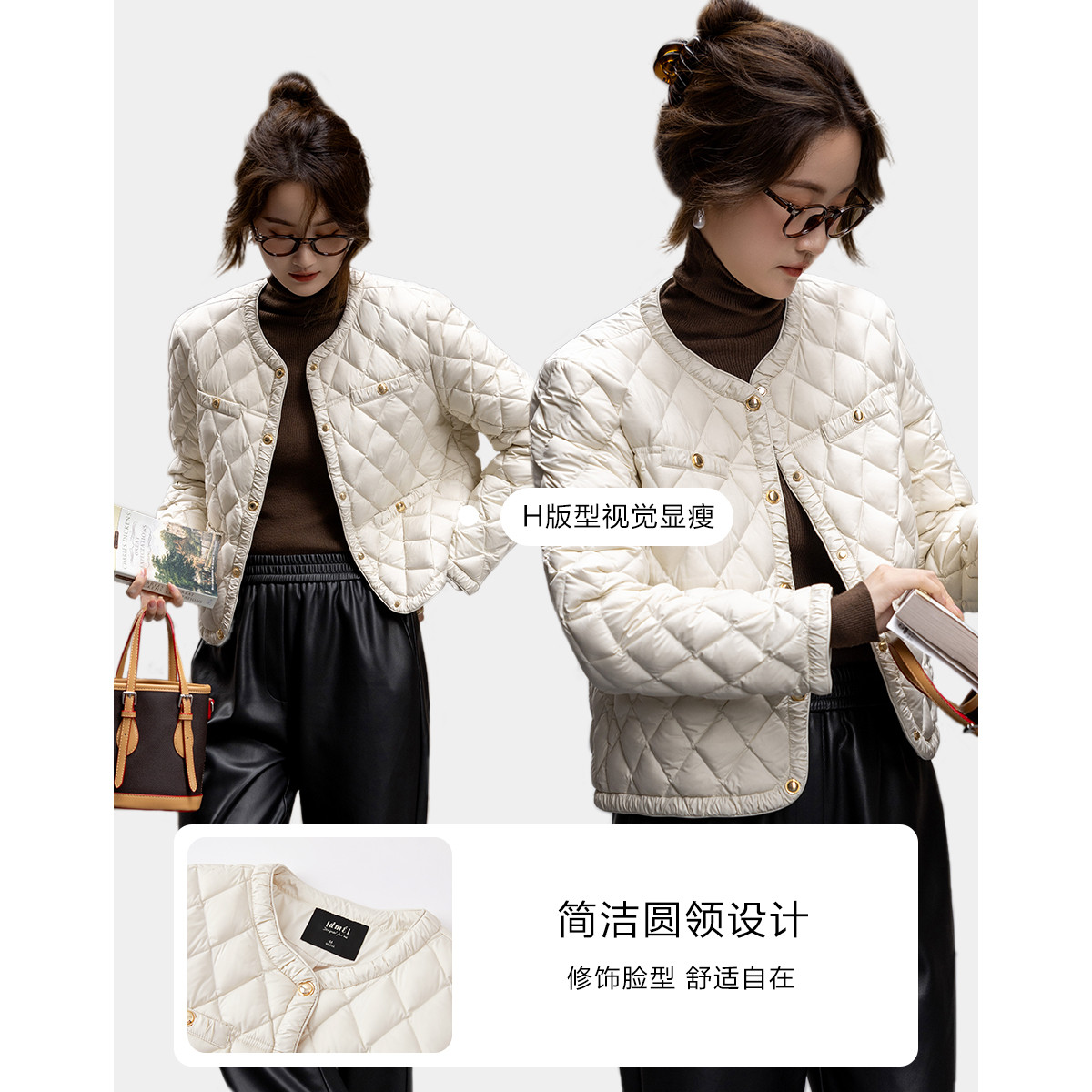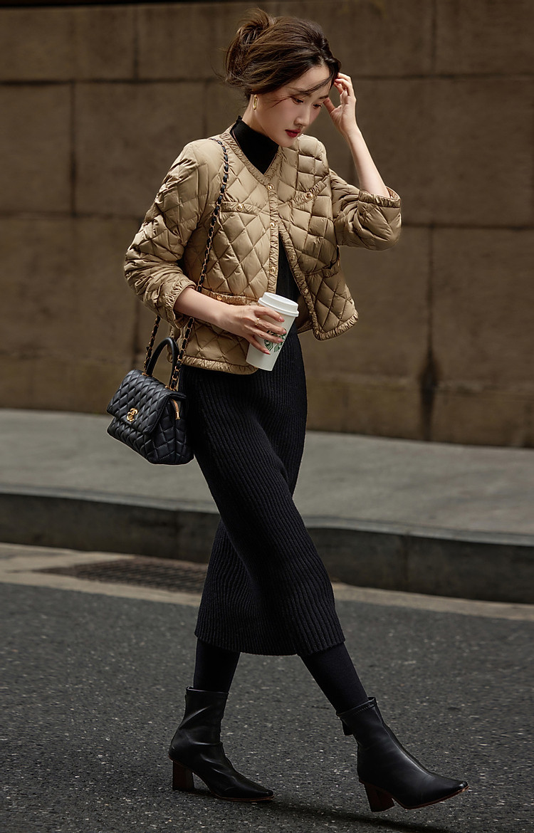 【千金玛德琳】24冬小香风轻薄云朵90鸭绒粗花呢遮肉羽绒服女