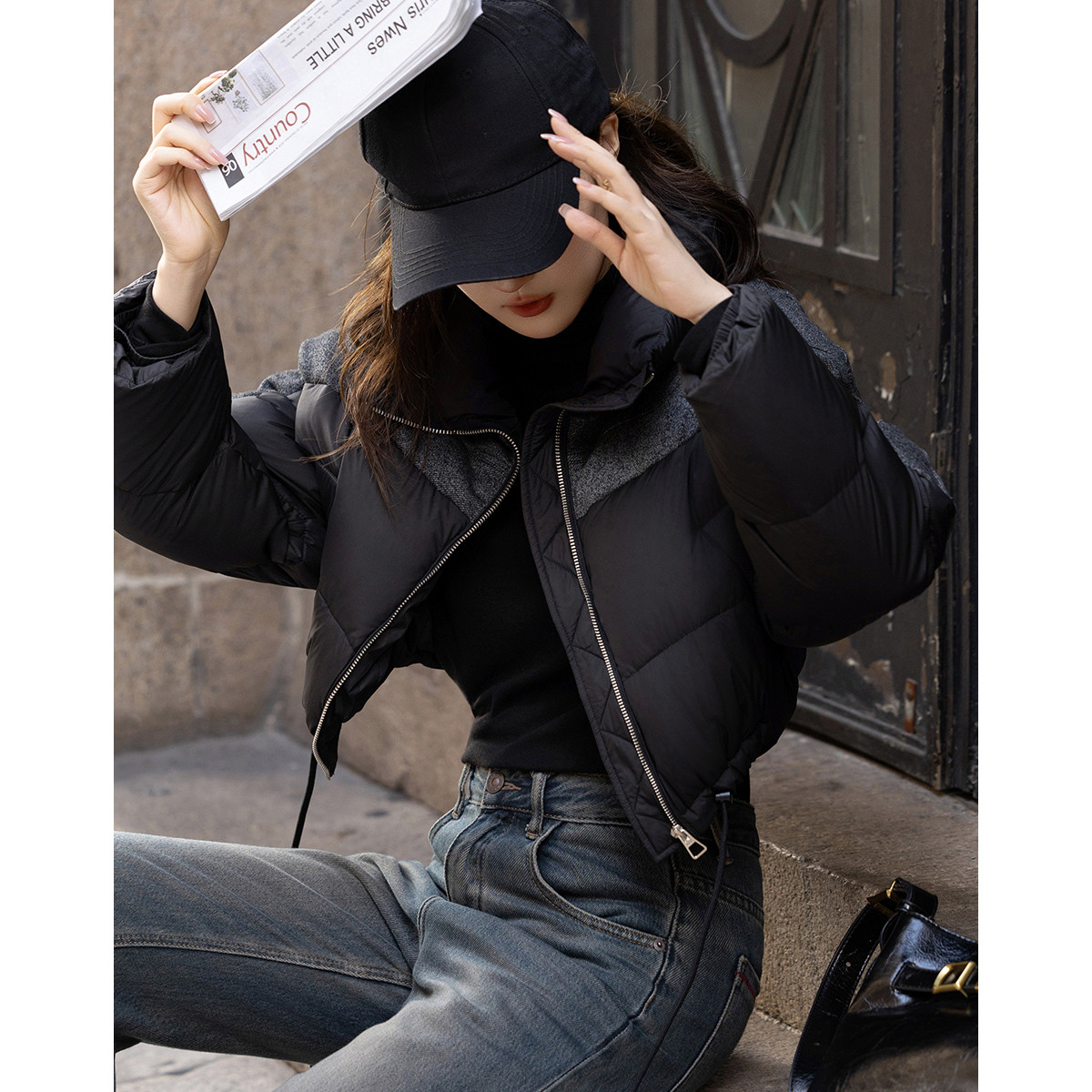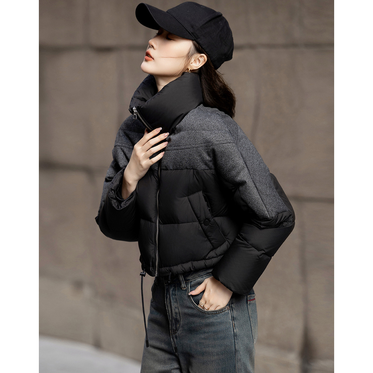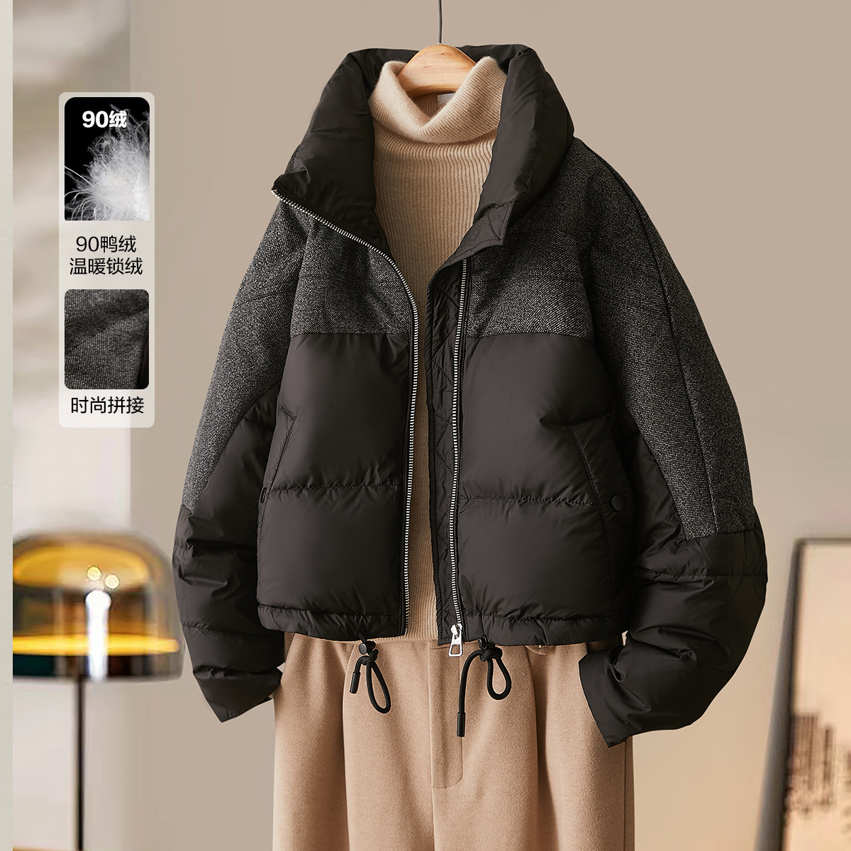 【雪山都市】冬轻奢90鸭绒400T春亚纺抽绳拼接短款羽绒服女