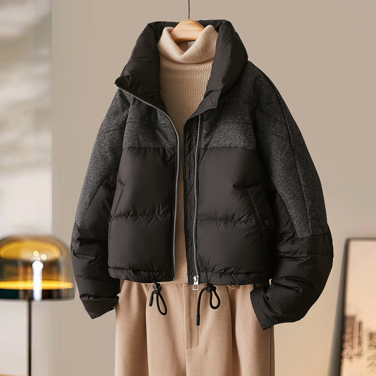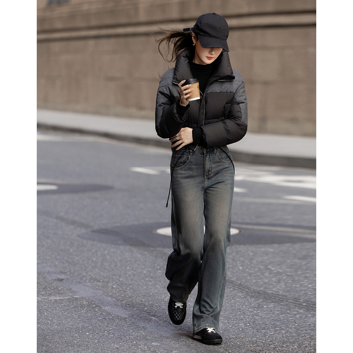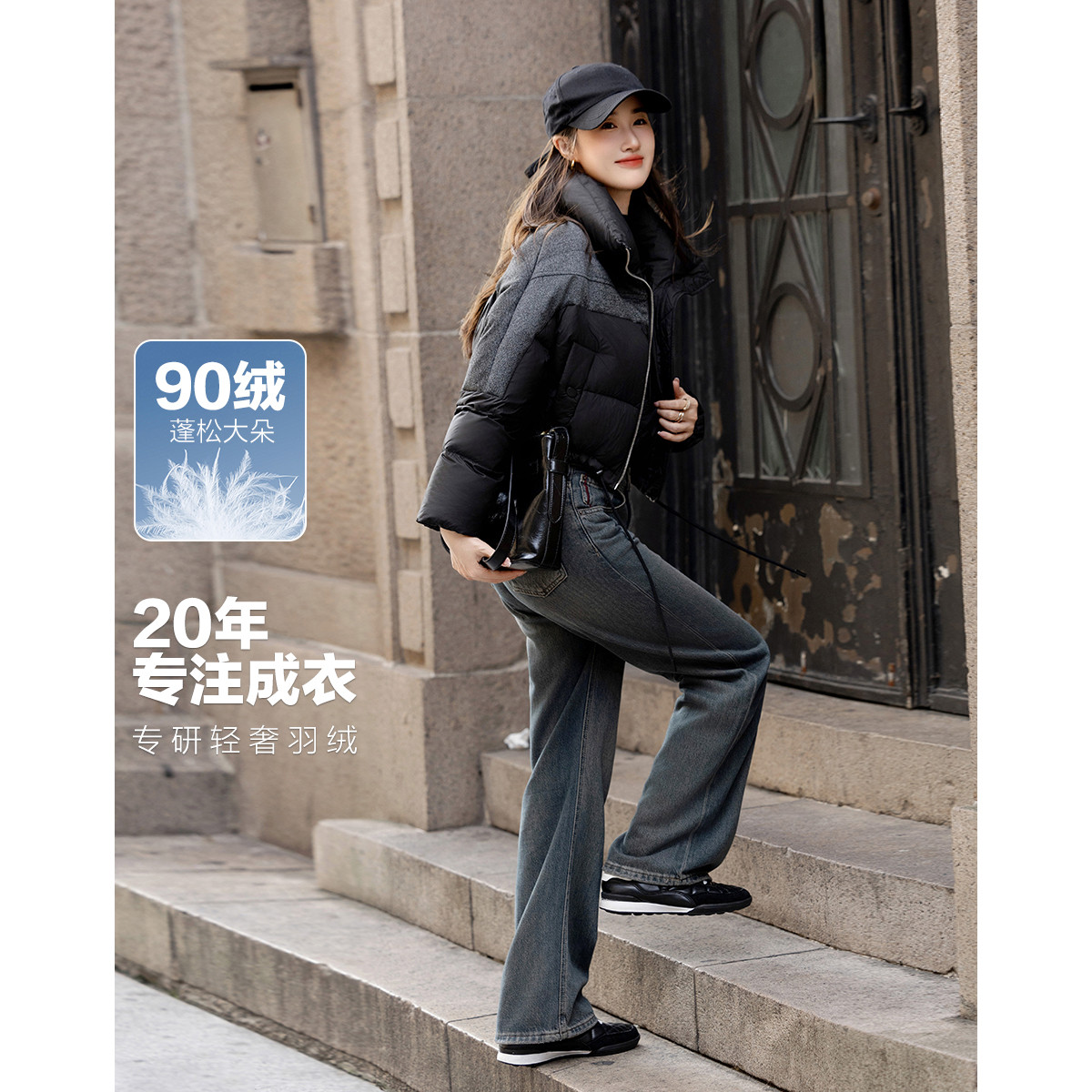 【雪山都市】冬轻奢90鸭绒400T春亚纺抽绳拼接短款羽绒服女