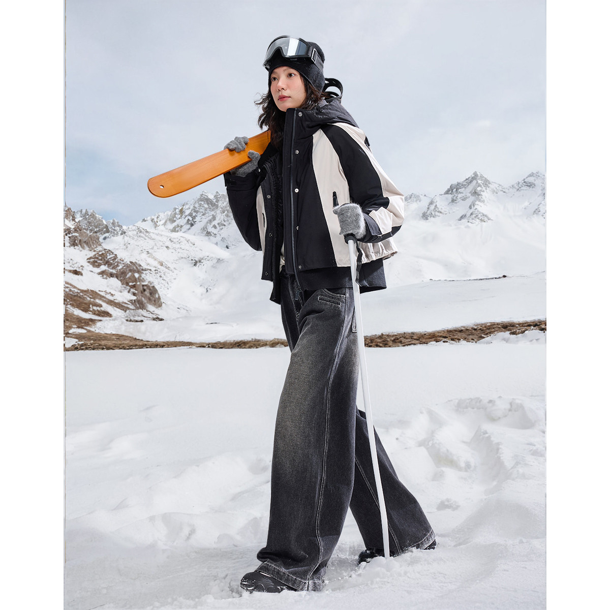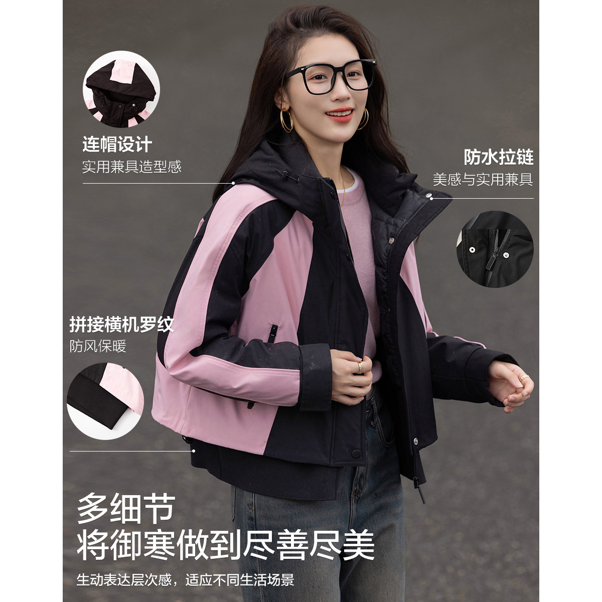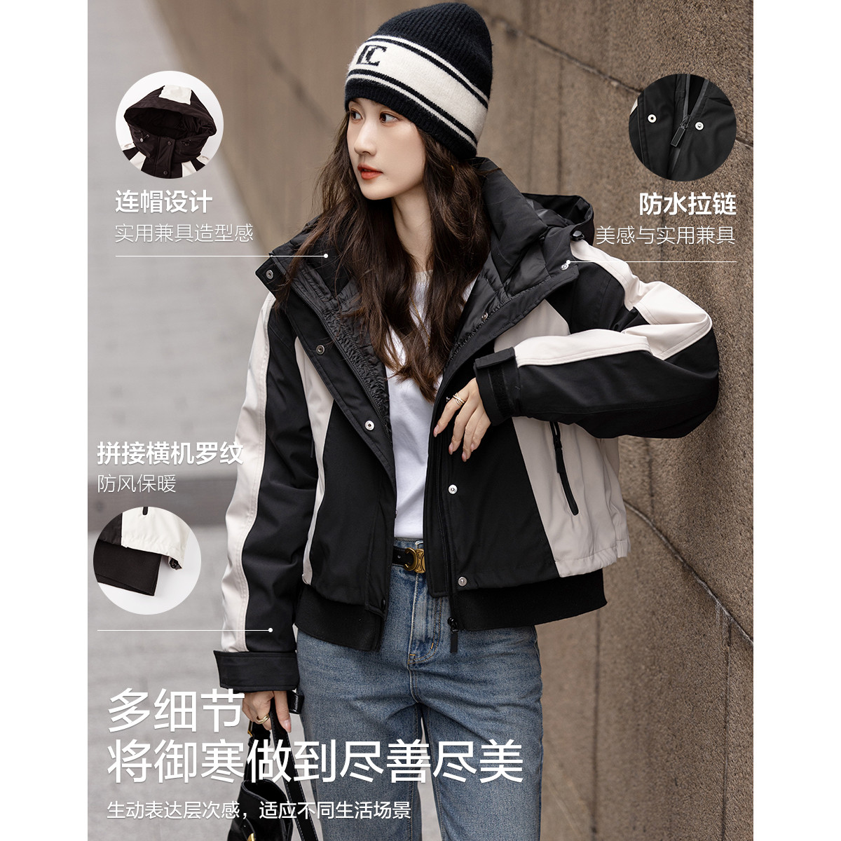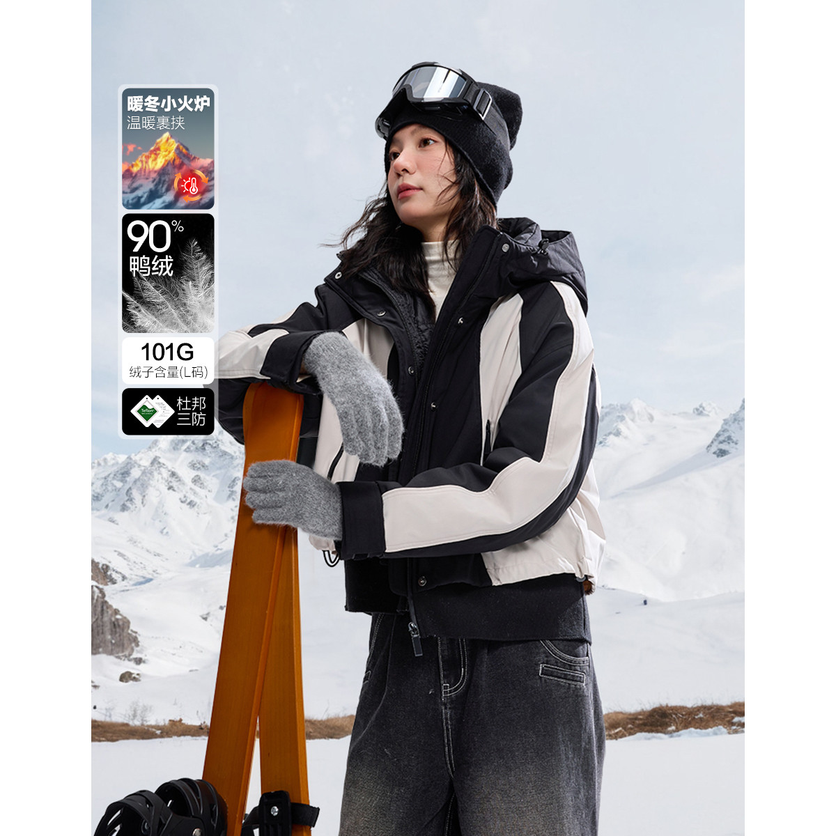 【北欧棉三防系统】冬季户外撞色90鸭绒连帽短款羽绒保暖外套女