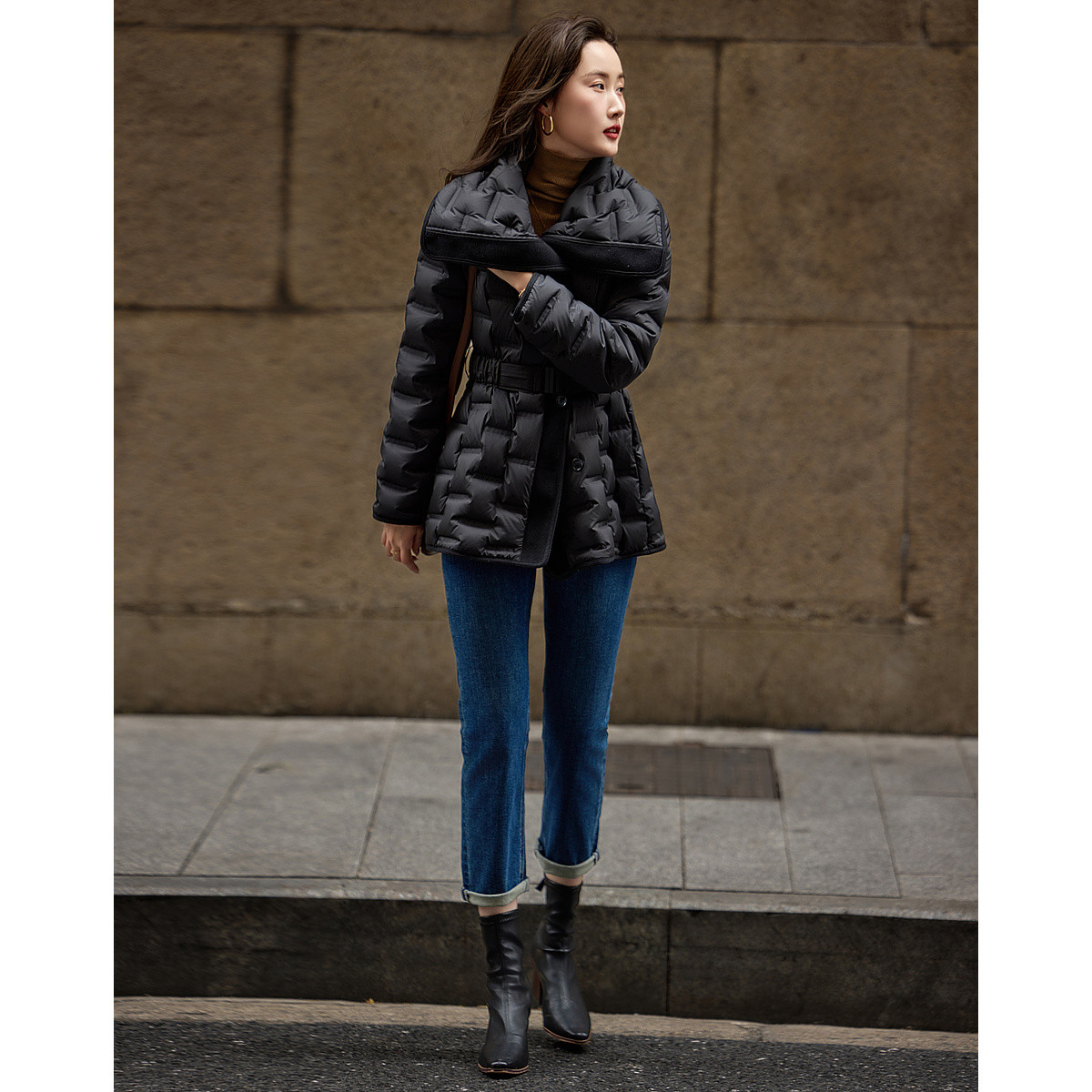 【黑珍珠版小蛮腰】冬季轻量高保暖90鸭绒橡筋腰带短款女羽绒服