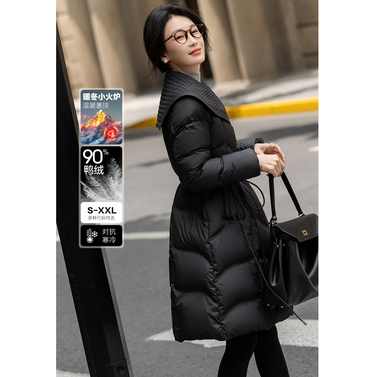【400T春亚纺】冬季轻量90鸭绒大翻领抽皱调节腰女式羽绒服