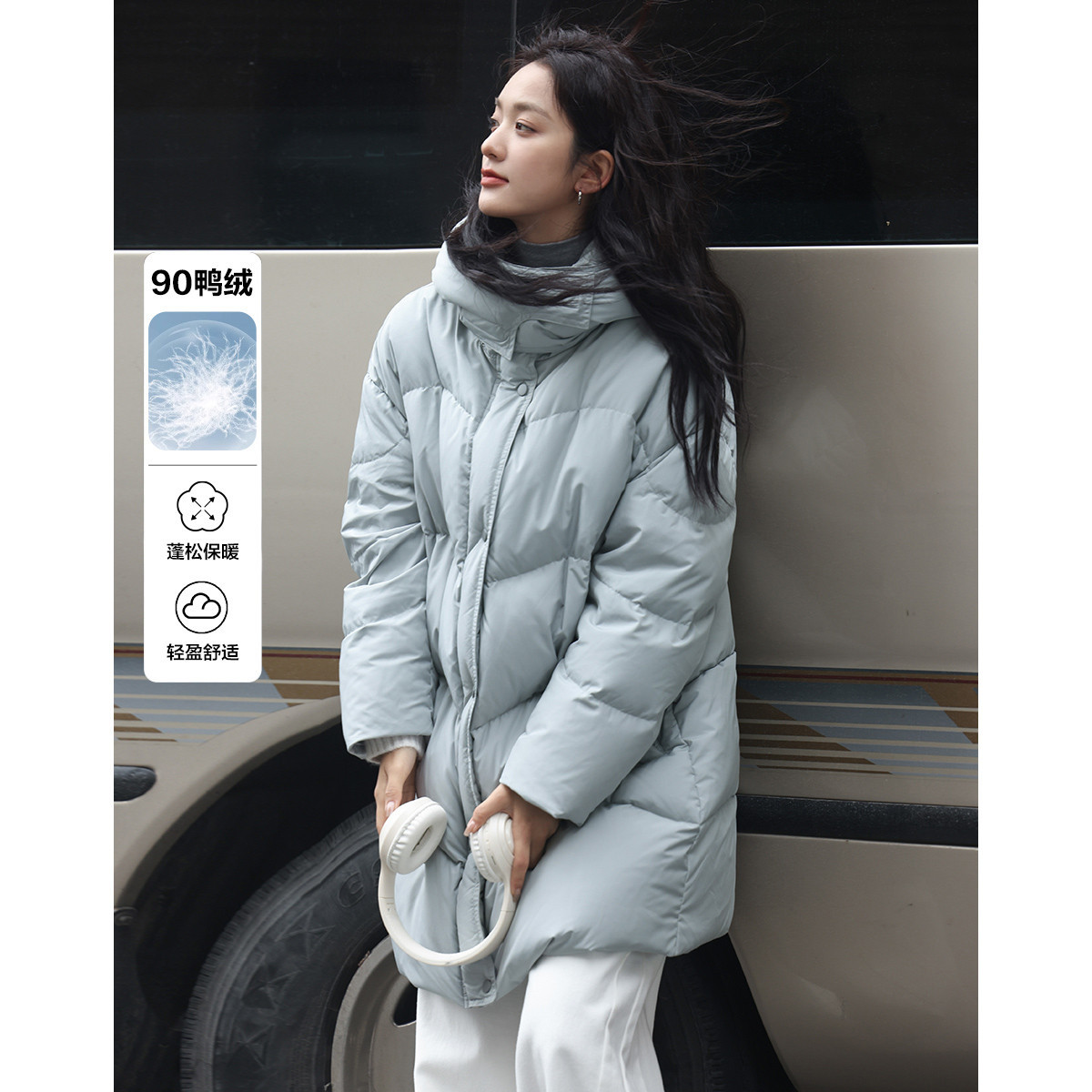 【轻量暖冬】冬季90鸭绒连帽简约保暖藏肉中长款羽绒服女式外套
