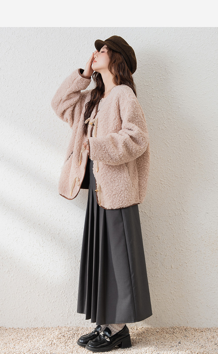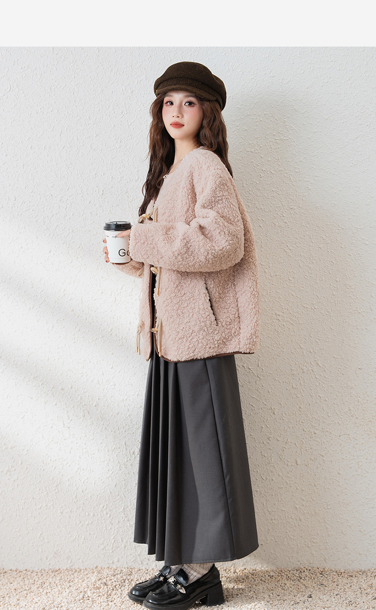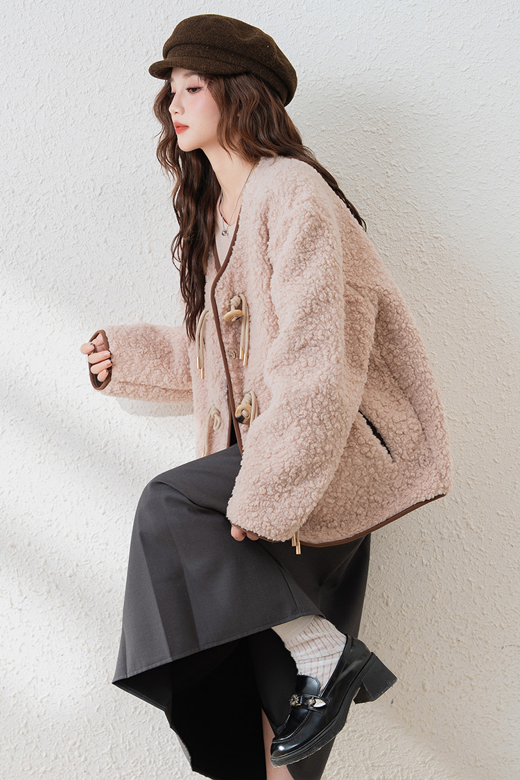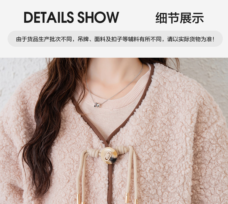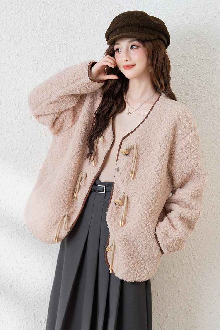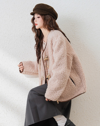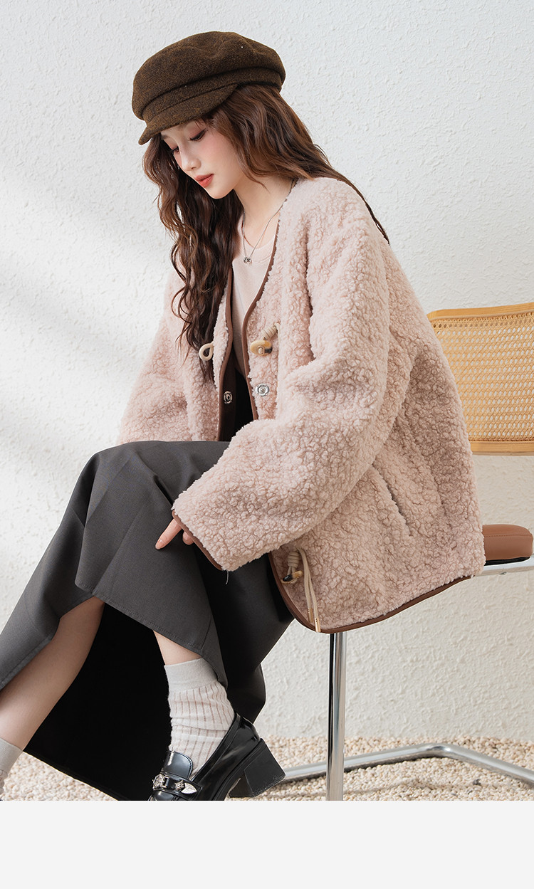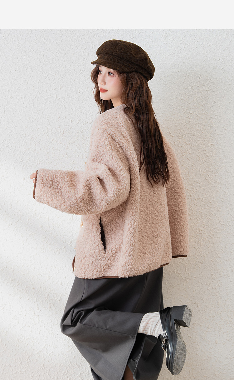 2024冬季女无领仿羊羔毛外套温柔百搭气质韩版休闲通勤潮流