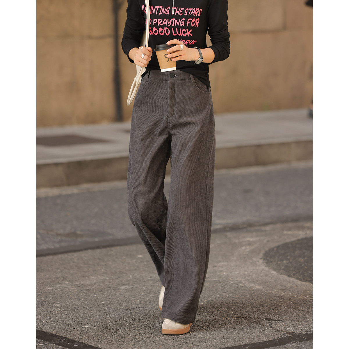 【简约铅灰休闲裤】2024冬款百搭立体竖坑条宽松慵懒松弛长裤