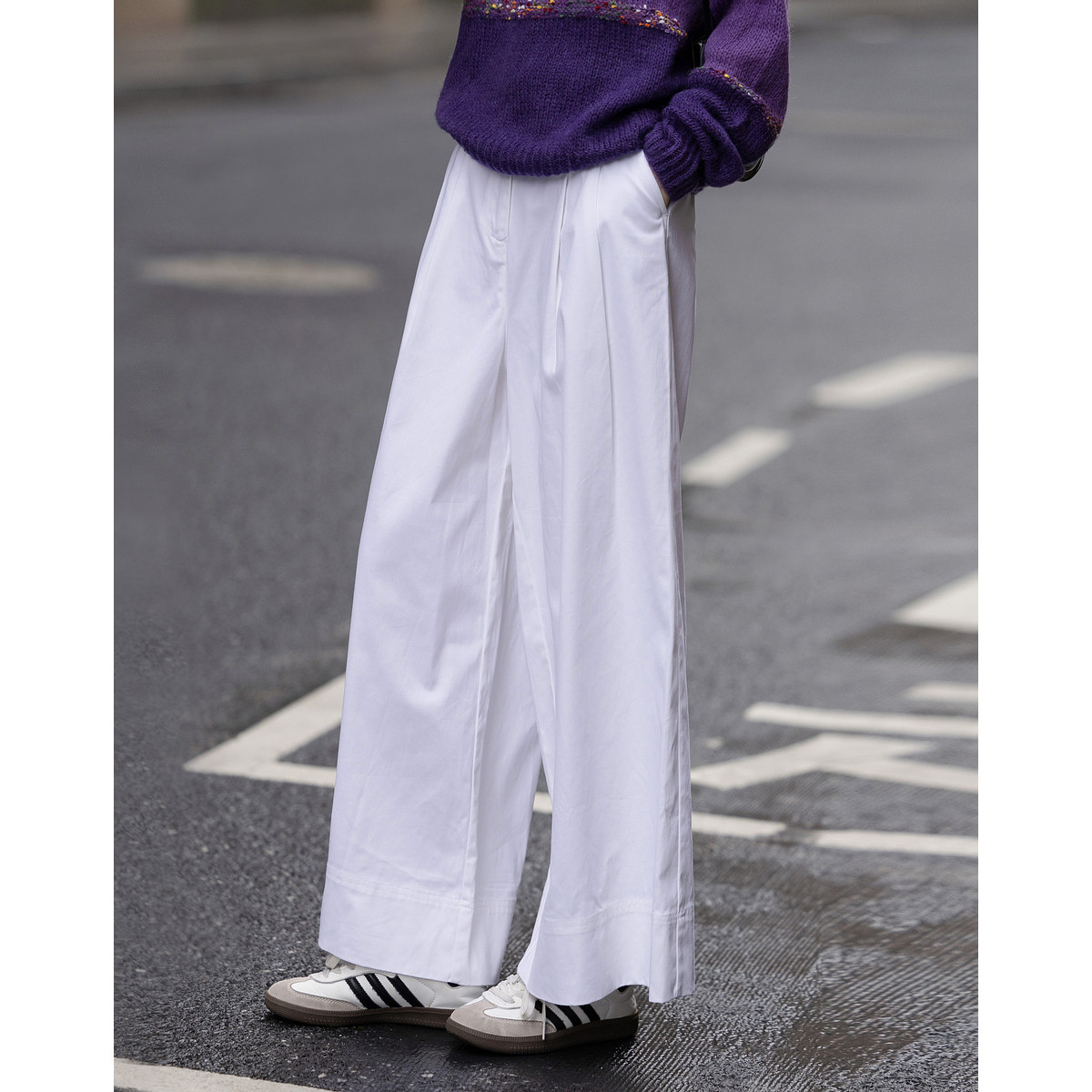 【纯棉舒适区】春季日系褶裥腰一粒扣A字阔腿裤遮肉女式休闲裤