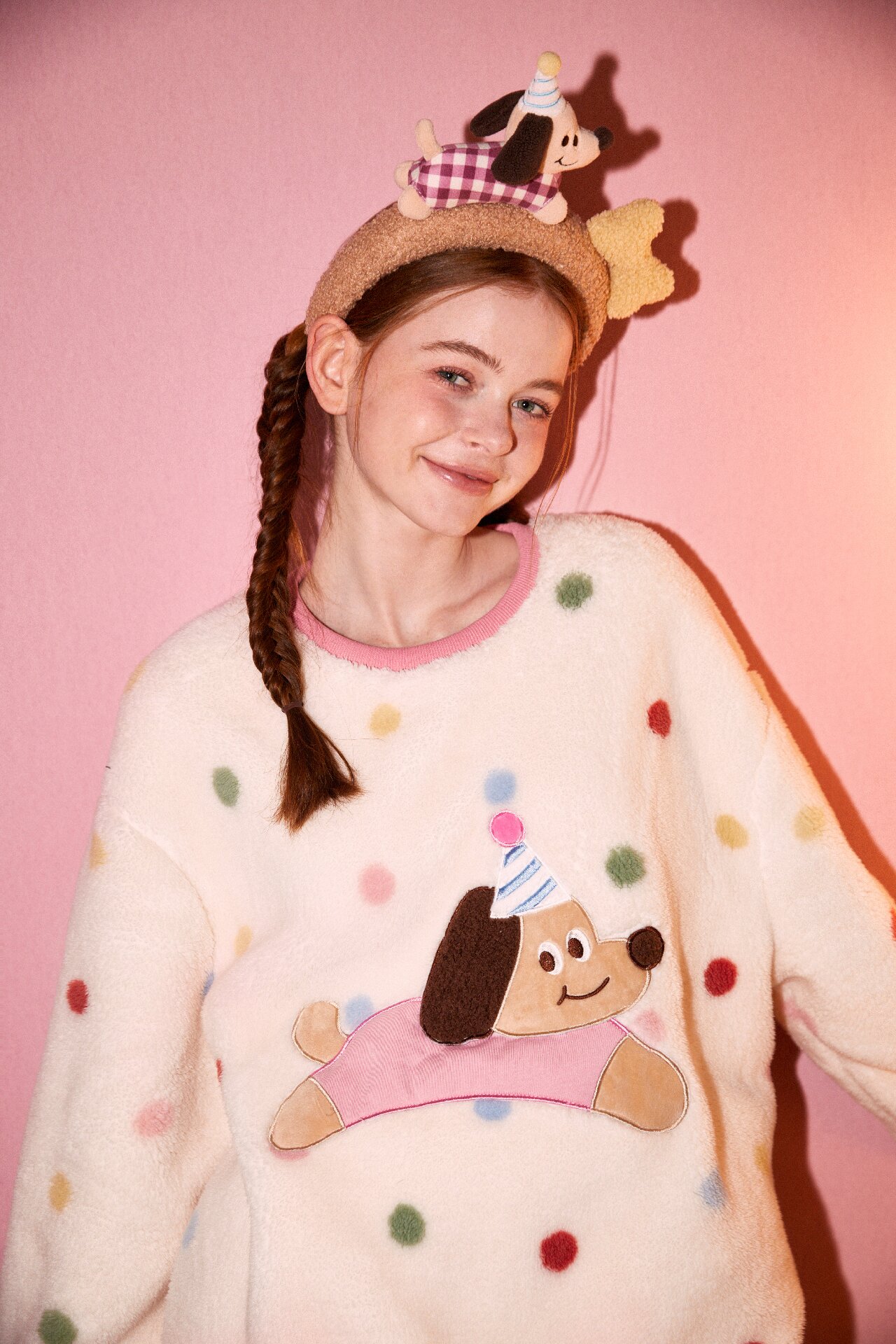 【Gukoo果壳】秋冬双面北极绒保暖柔软宽松波点小狗女式家居服套装