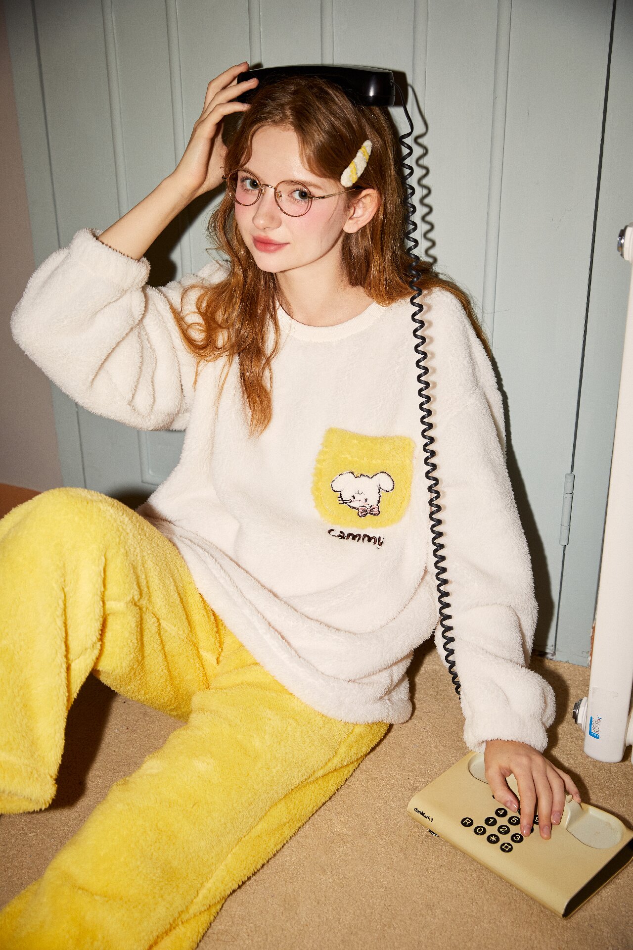 果壳(Gukoo)睡衣女24年秋冬季新款卡通圆领套头薄绒款保暖女士套装家居服