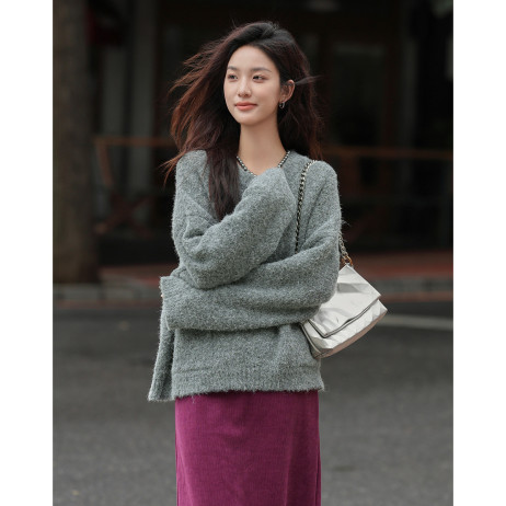【格雷系圆领针织衫】2024冬款套头前胸贴袋设计长袖针织衫女