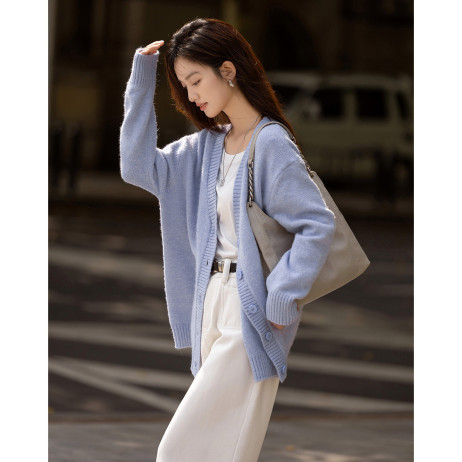 【温柔浅紫】2024冬季款慵懒软糯V领针织开衫宽松毛衣女