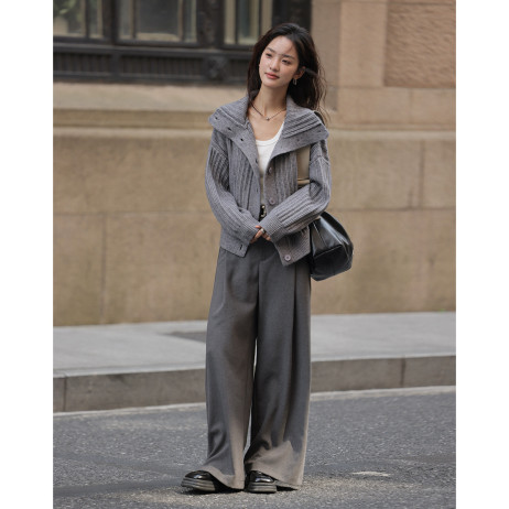 【静奢老钱风】2024冬款都市翻领保暖宽松遮肉针织开衫女
