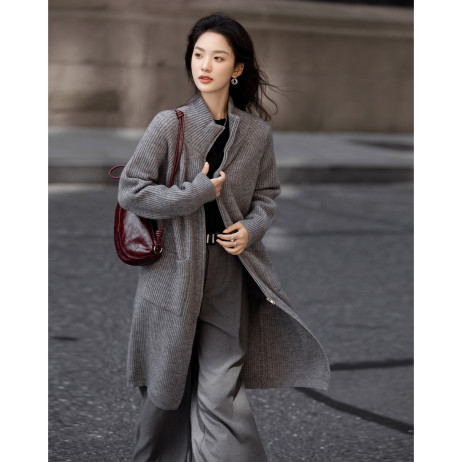 【高领毛衣开衫】2024冬款都市松弛感插肩袖双贴袋针织衫女