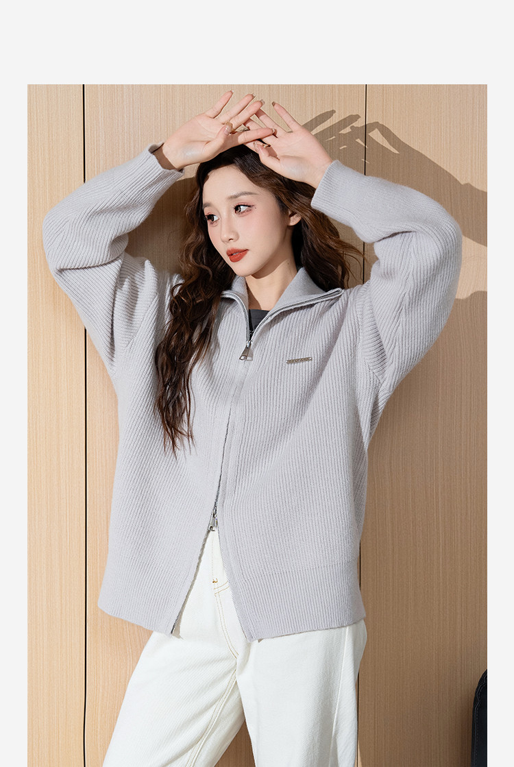 德玛纳【甜酷桑莓】冬季高领提花长袖线衫设计感镂空宽松针织衫女上衣G540420342402