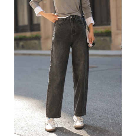 【时髦碳黑色牛仔裤】2024冬款无弹磨毛萝卜裤女
