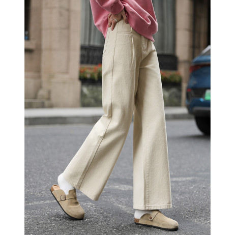 【简约杏色牛仔裤】2024冬款个性方边口袋时髦基础垂顺直筒裤