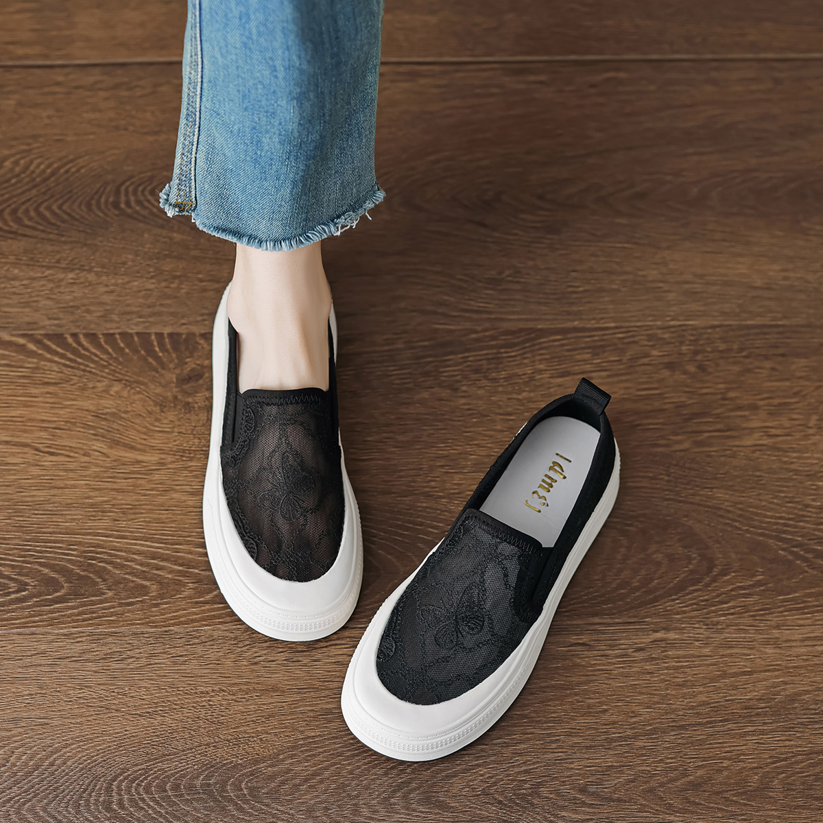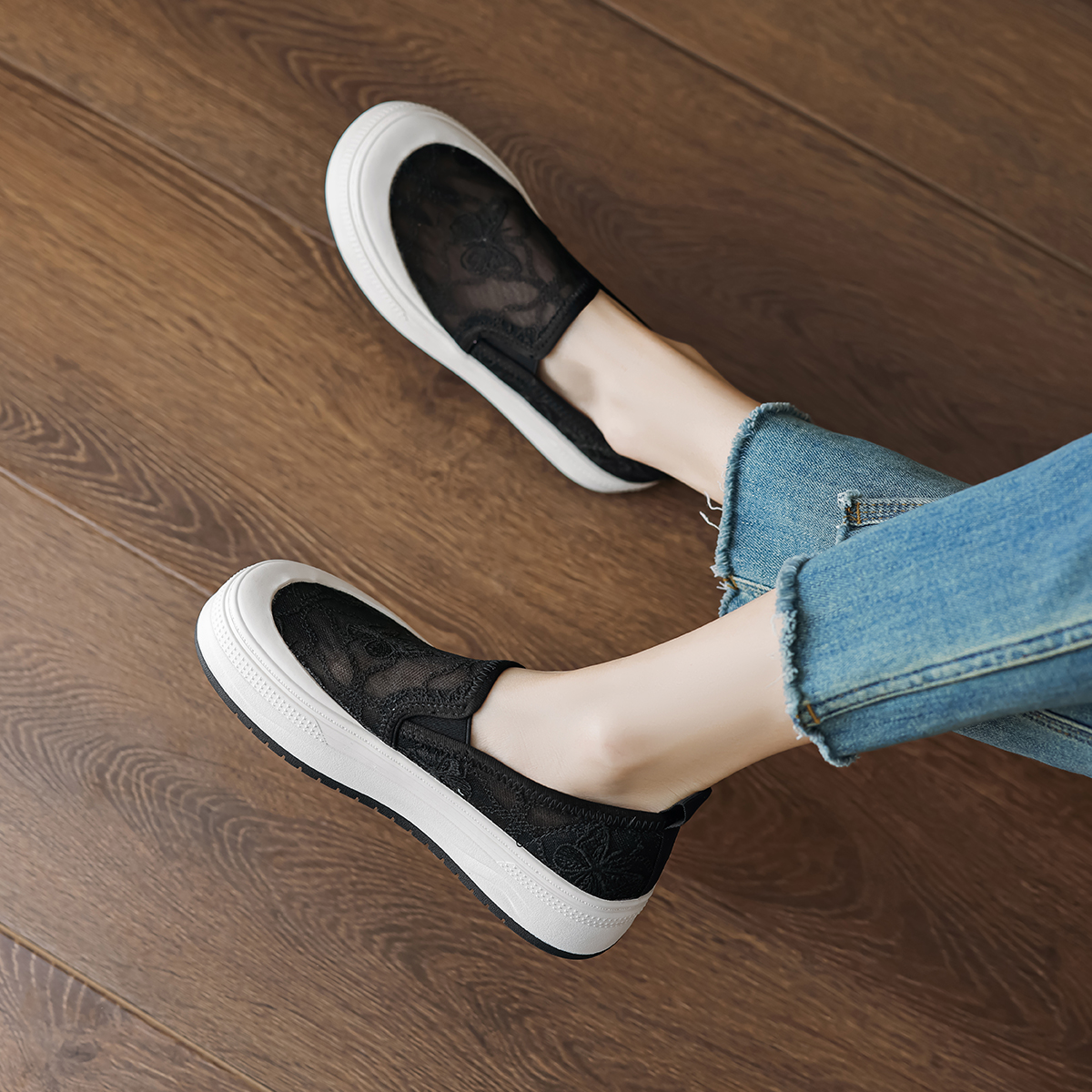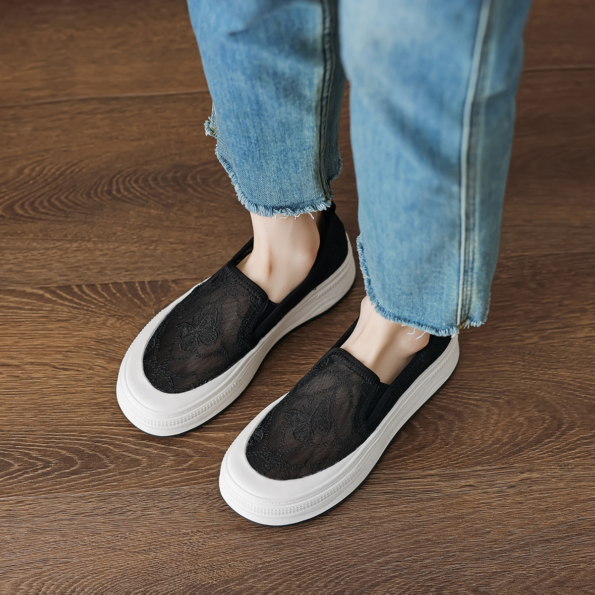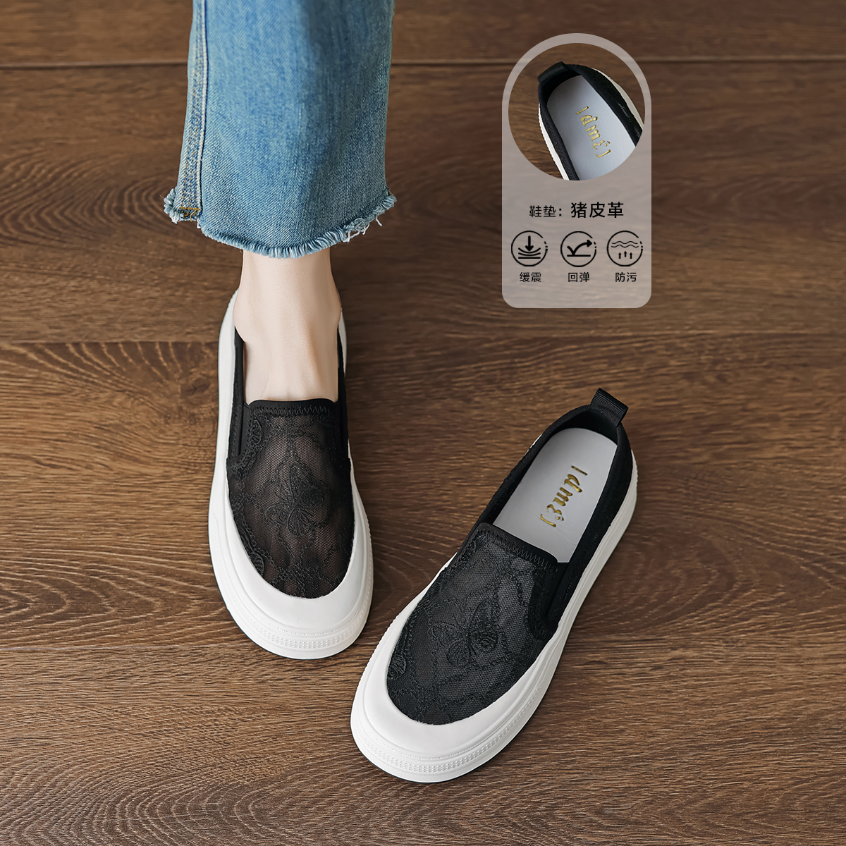 2024夏季时尚简约仙女蝴蝶透气网面厚底通勤日常一脚蹬渔夫鞋