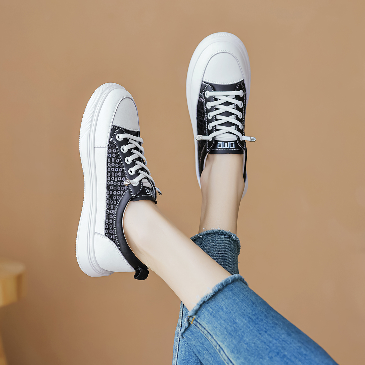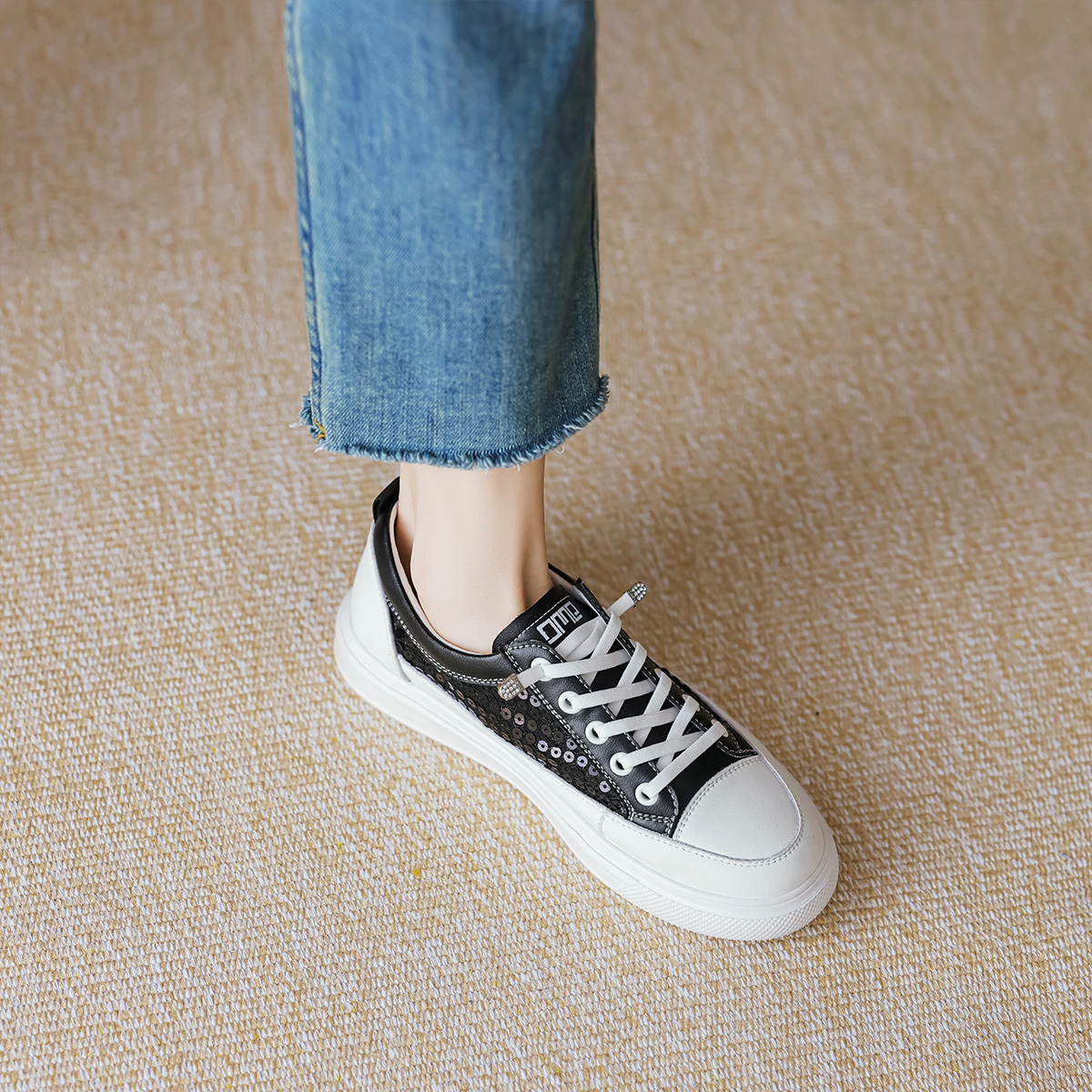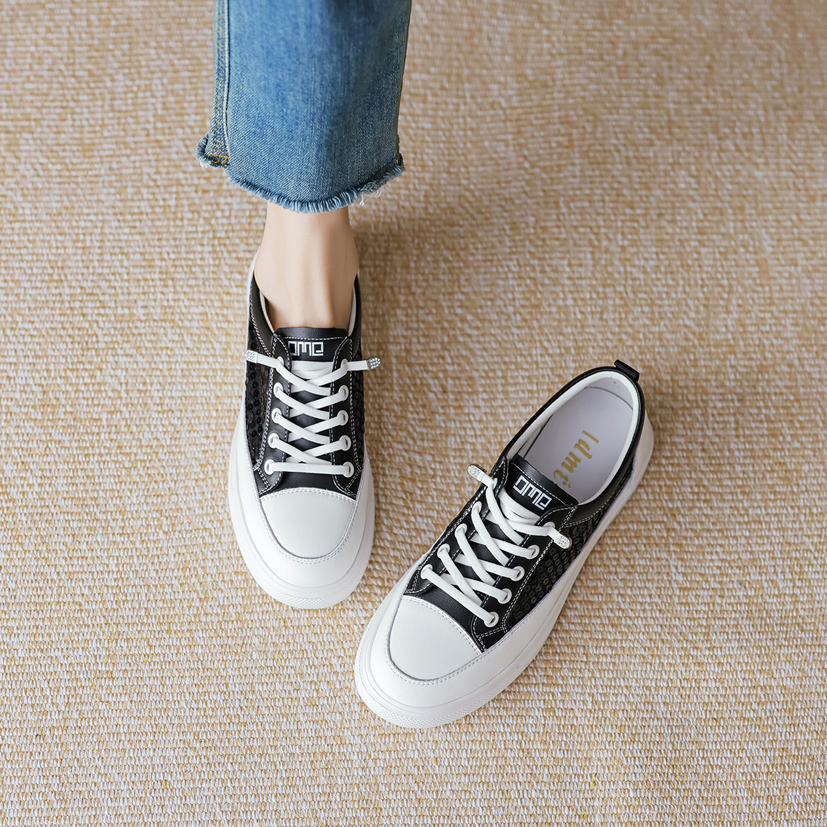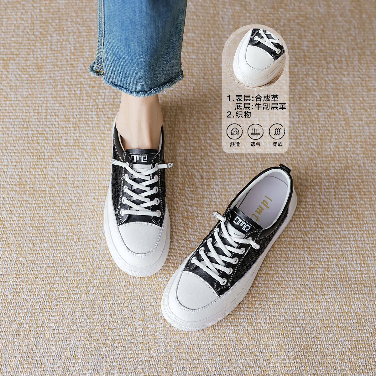 2024夏季舒适百搭花朵网面拼接日常通勤厚底轻便撞色女休闲鞋