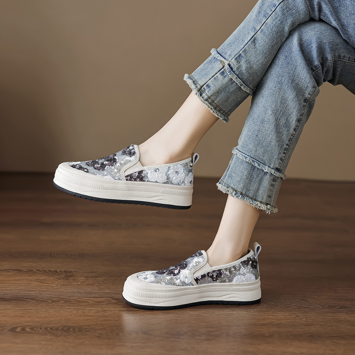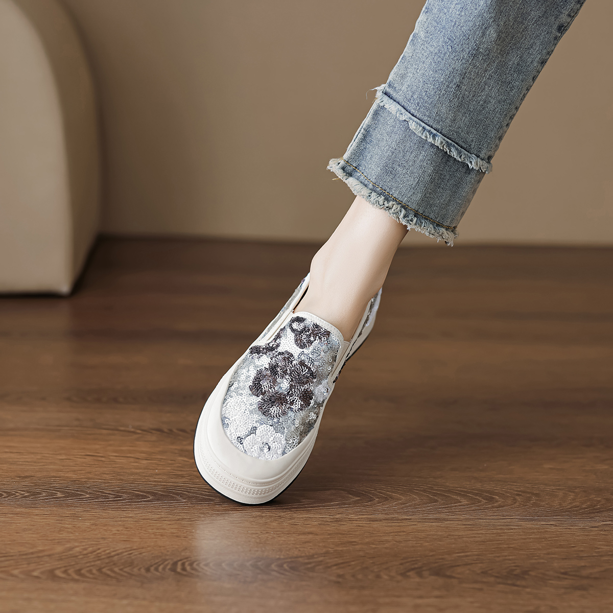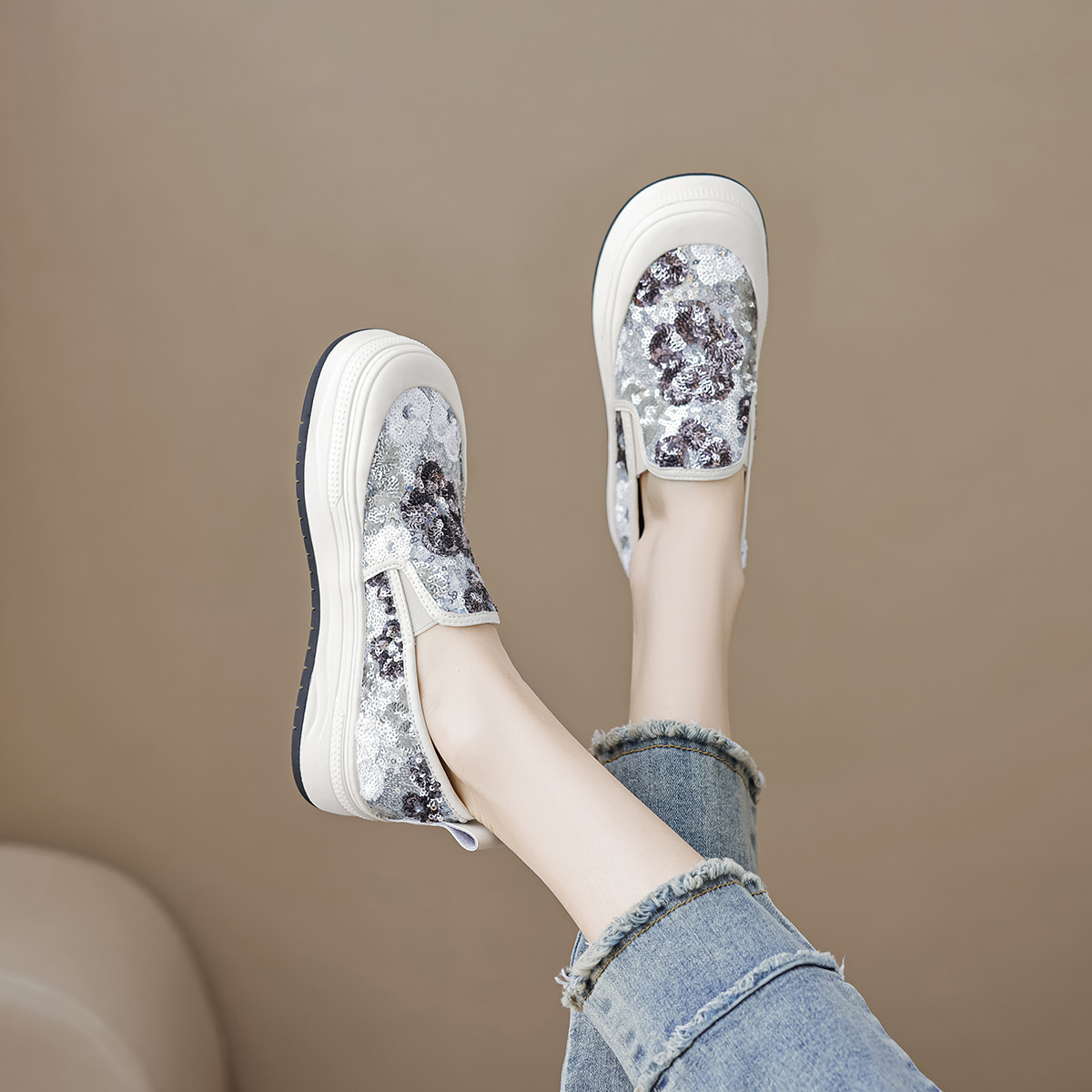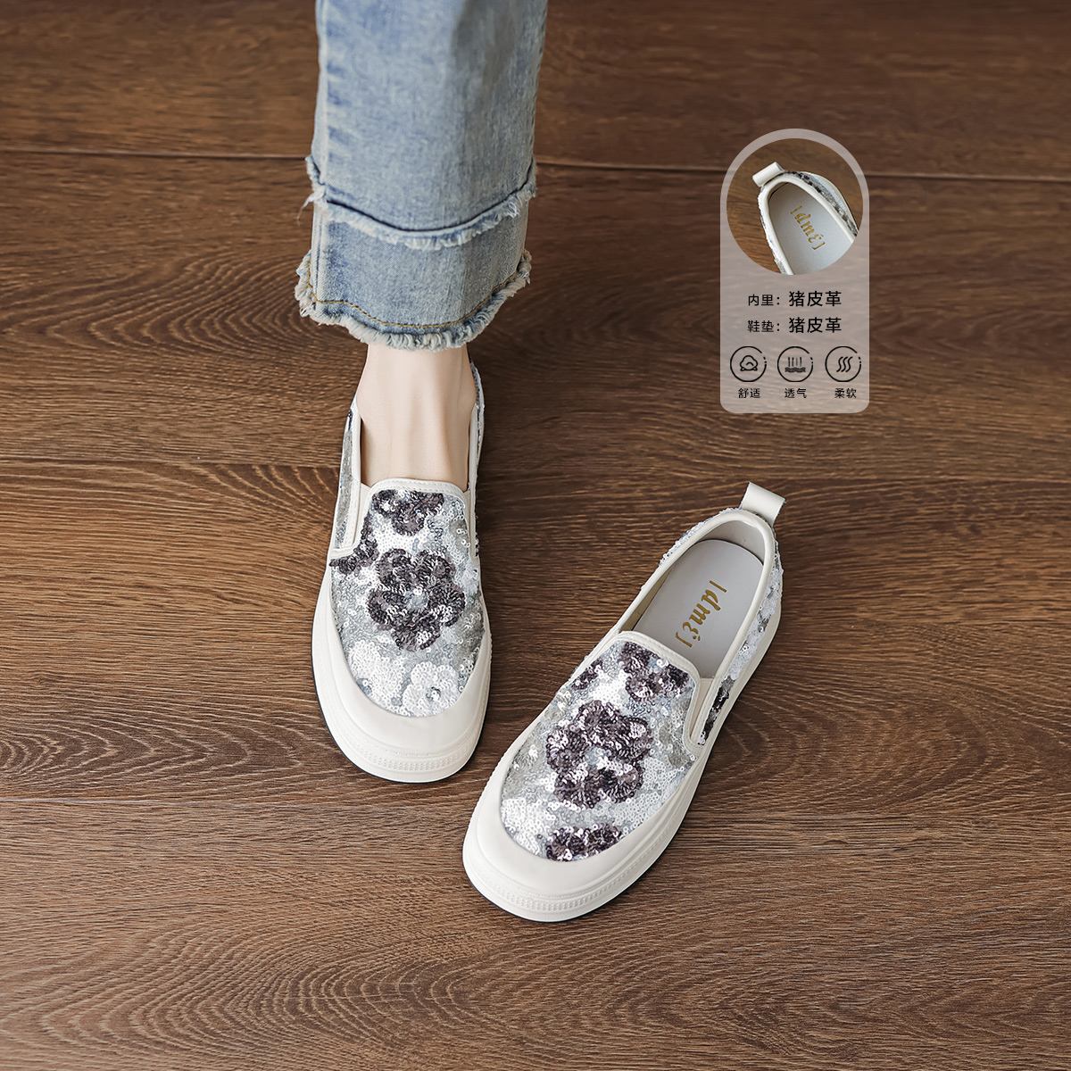 2024春夏新款时尚潮流休闲度假日常通勤百搭小花厚底一脚蹬