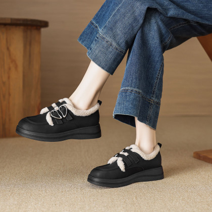 2024温暖冬日时尚百搭舒适休闲复古圆头毛领字母爱心扣毛毛鞋