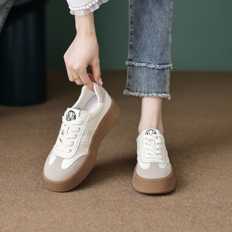 2024秋季简约日常百搭舒适编织斜纹撞色厚底德训鞋女休闲鞋