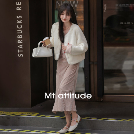 【杏仁奶油】秋冬款 新中式拼接翻袖设计圆领仿貂绒纯色外套