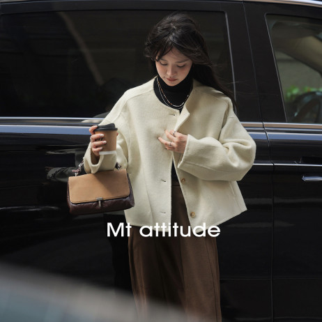 【奶油华夫饼】冬季款 百搭圆领基础款双面呢休闲纯色时尚短外套