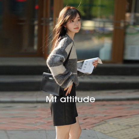 【格雷系】2024年冬季新款韩版时尚慵懒复古撞色套头长袖线衫