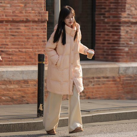 【满满温柔】2024冬款中长款连帽时尚简约云朵超柔羽绒服女