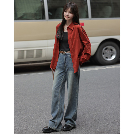 【韩系时尚款】2024冬款分割线设计细坑条长袖衬衫女