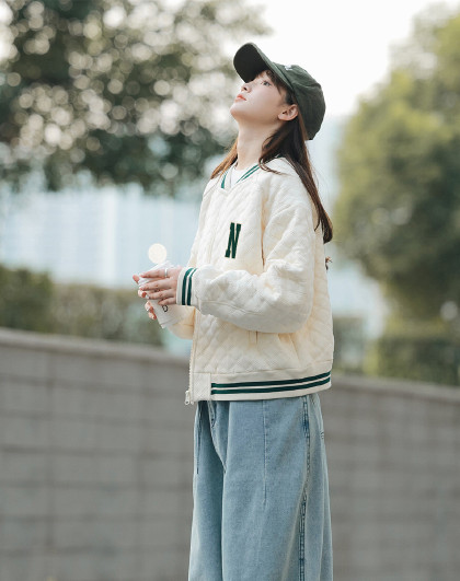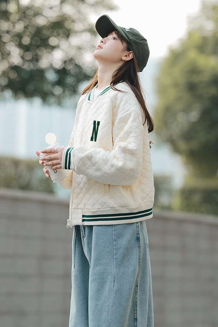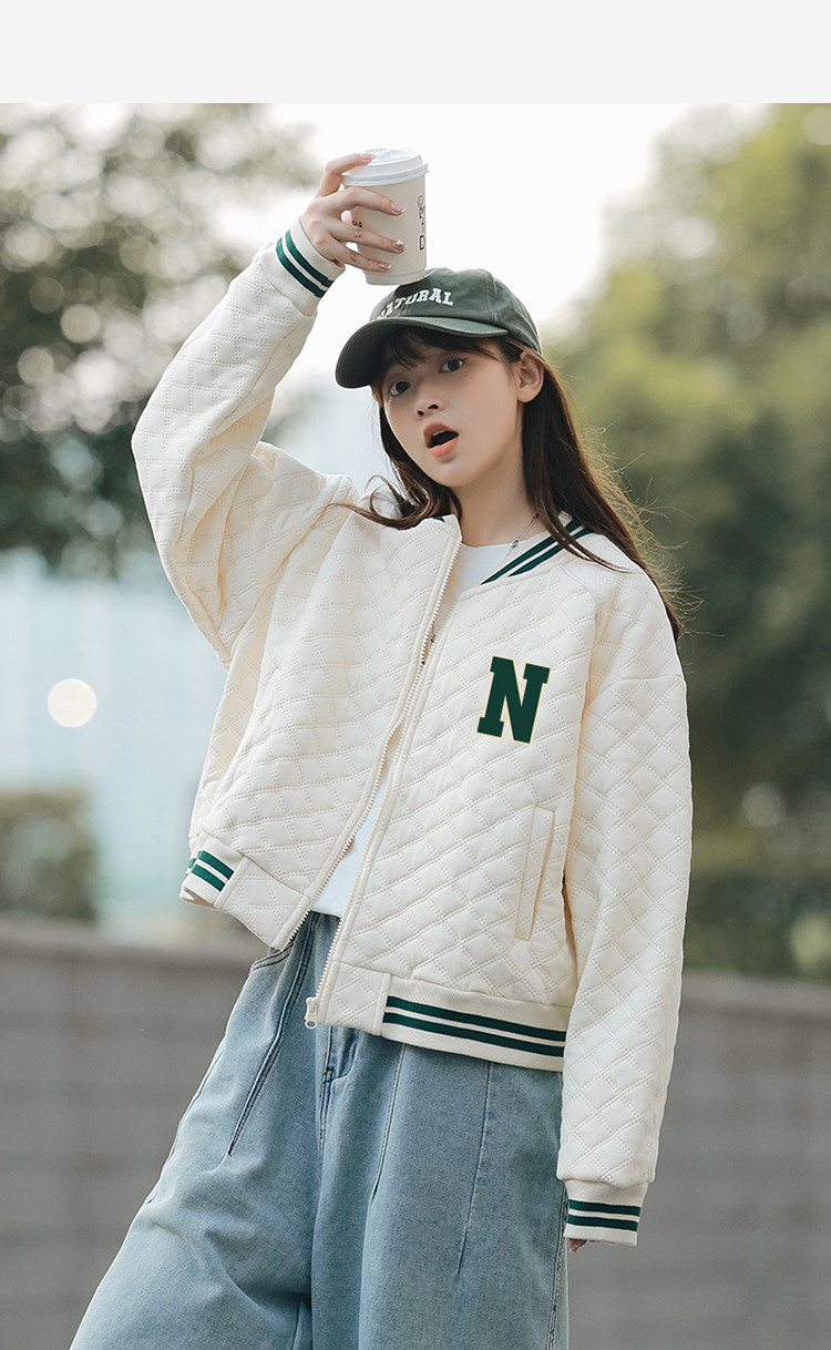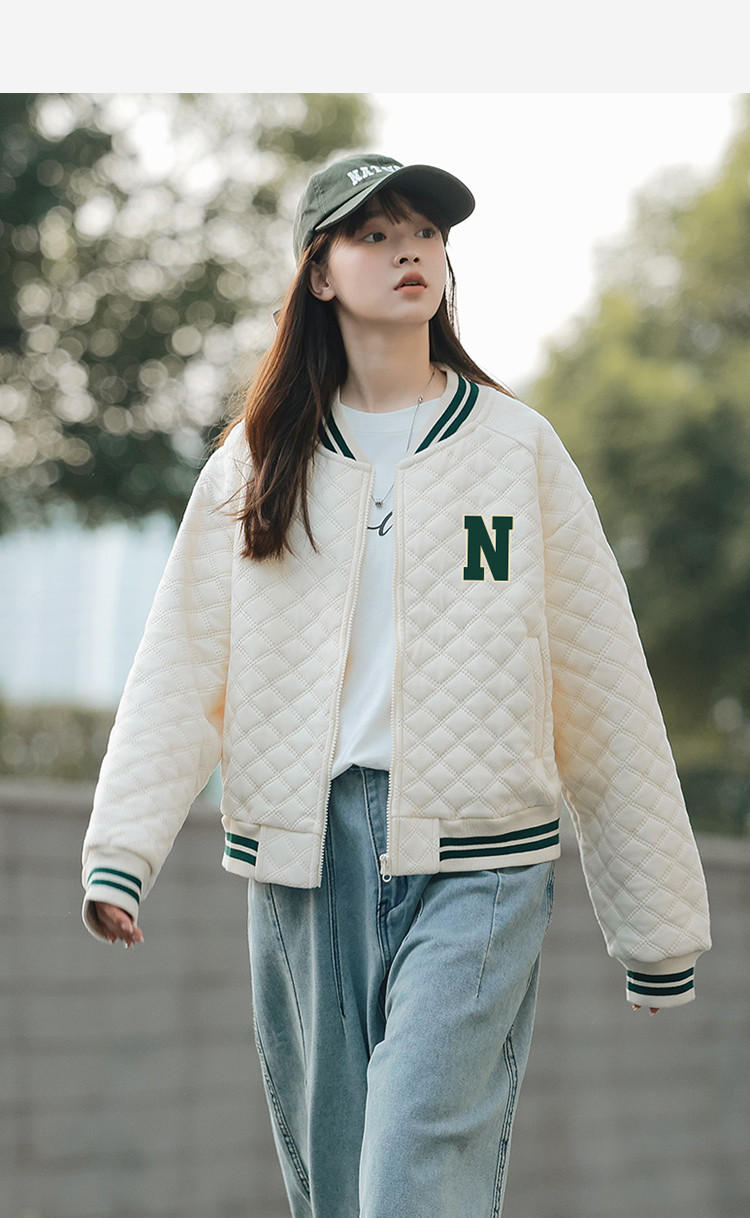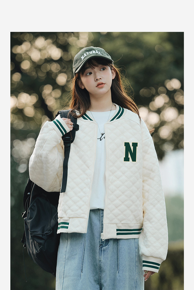 2024冬季女菱形格棒球服棉衣减龄学院风韩版休闲百搭时尚潮流