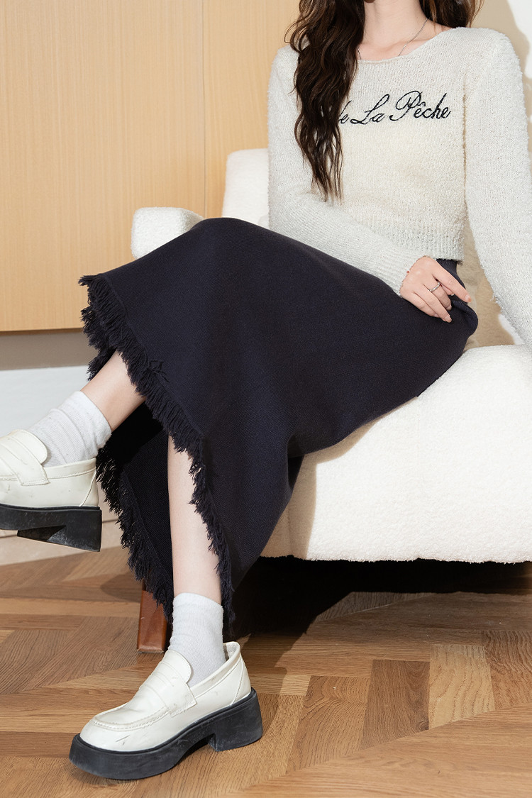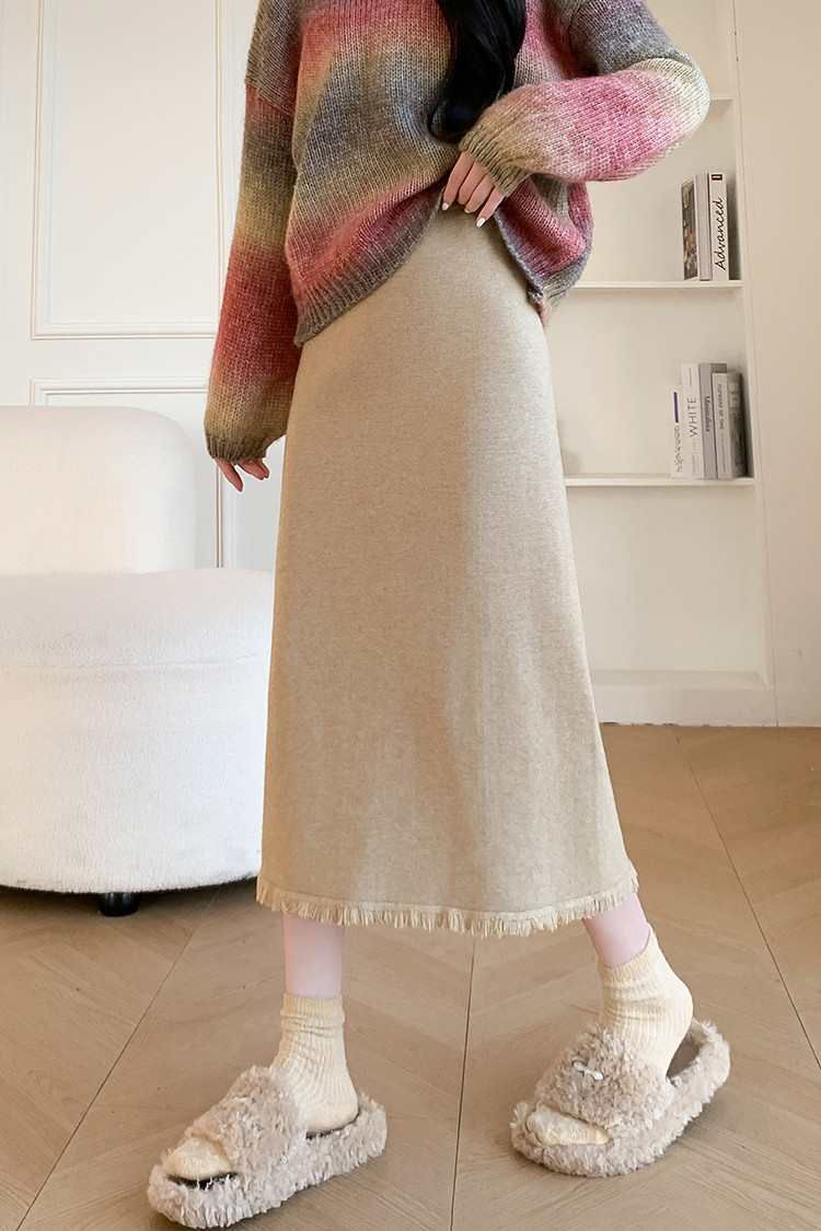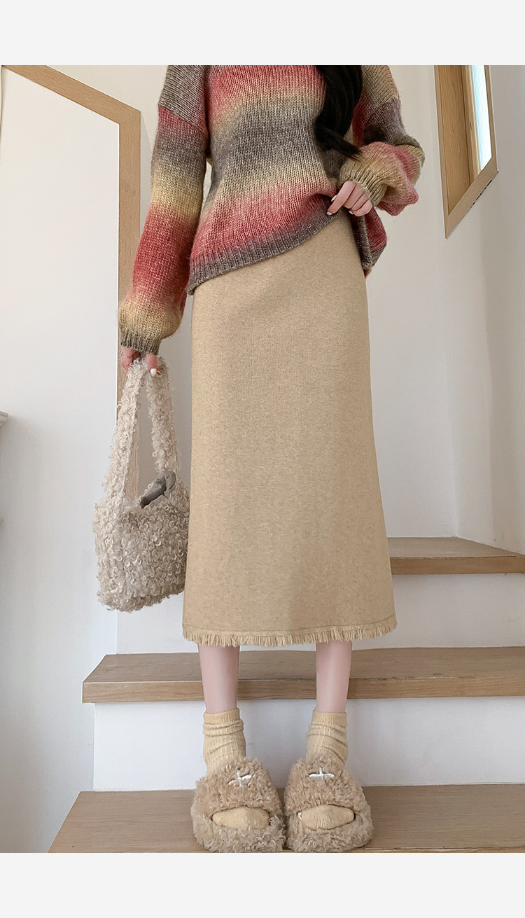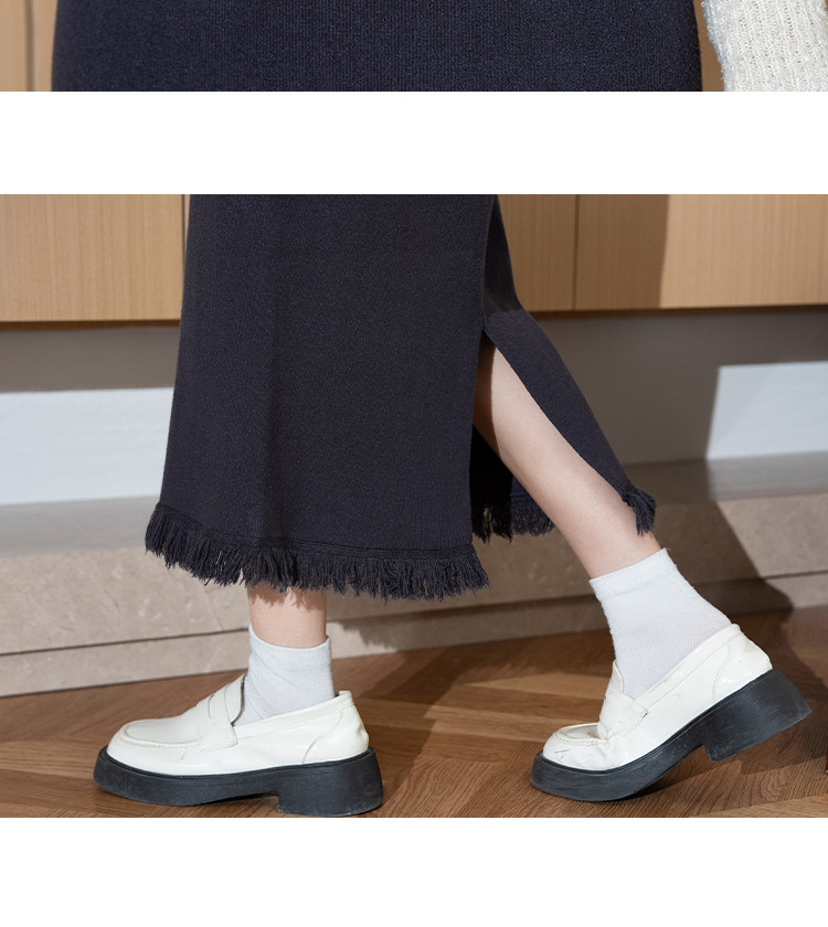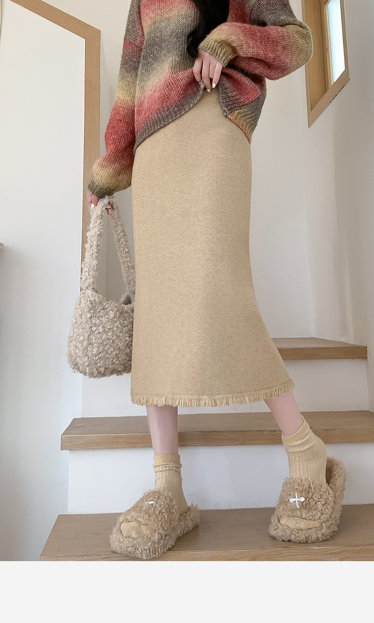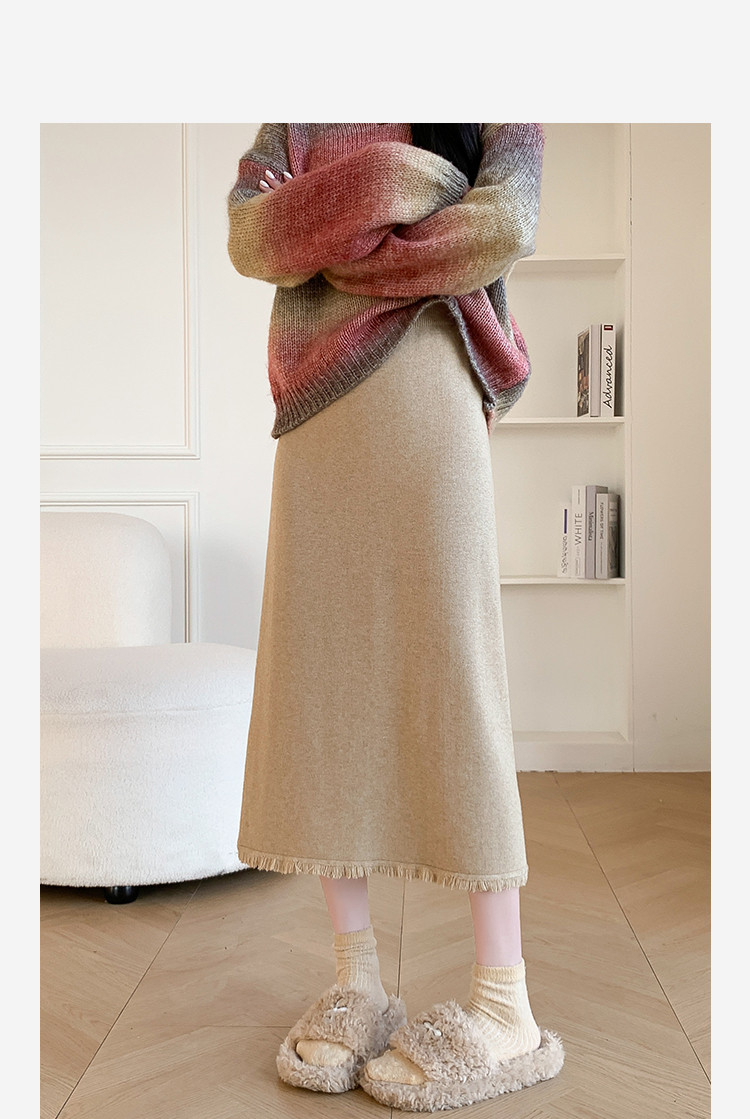 2024秋冬女流苏一步针织长裙设计感高级百搭时尚简约淑女包臀