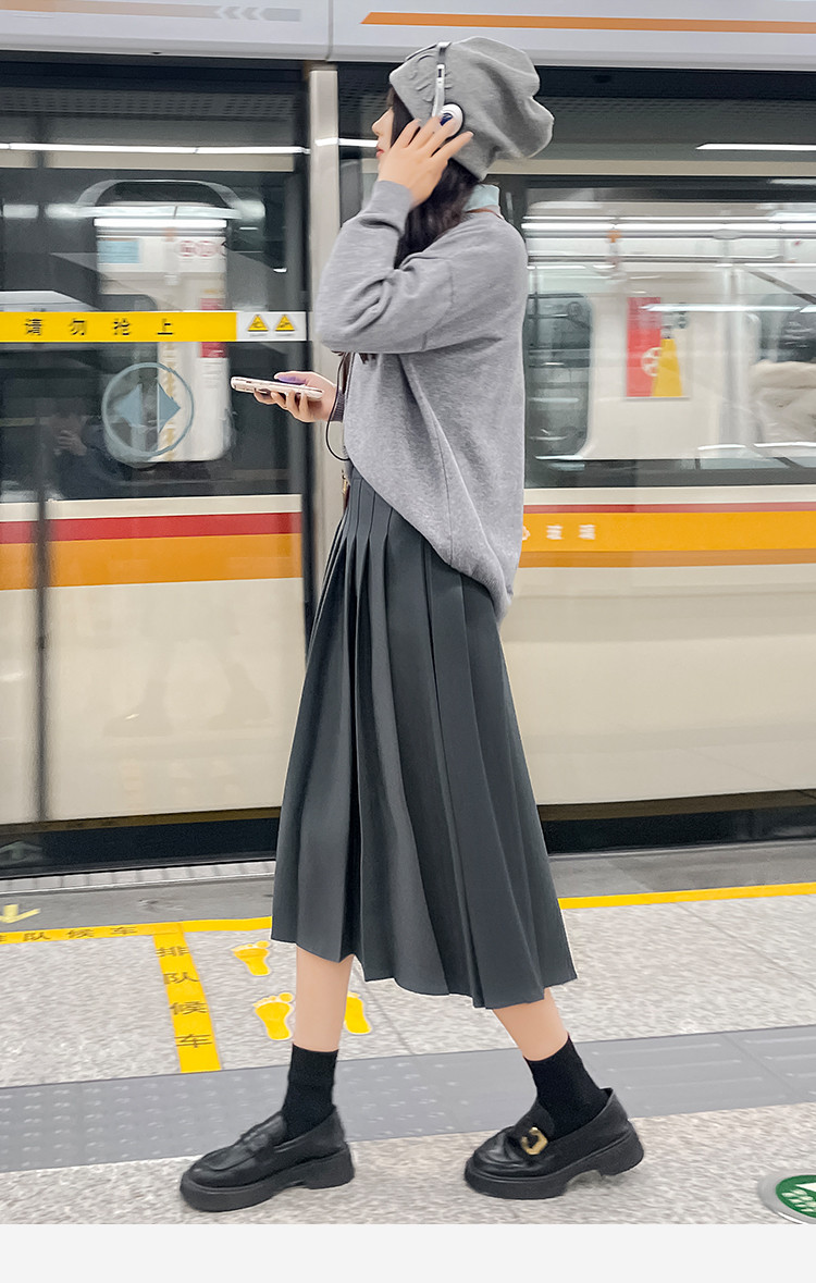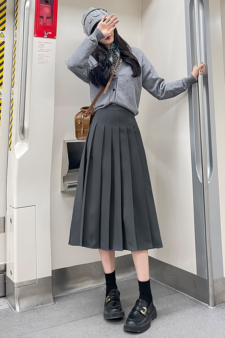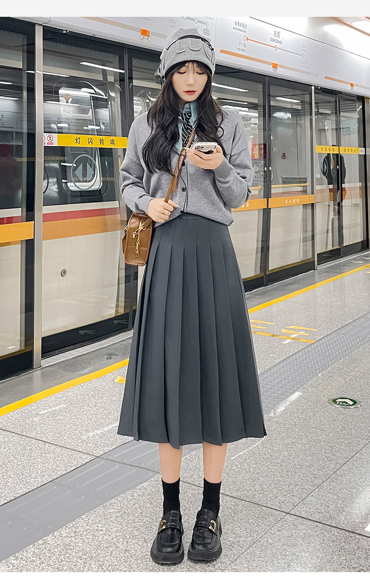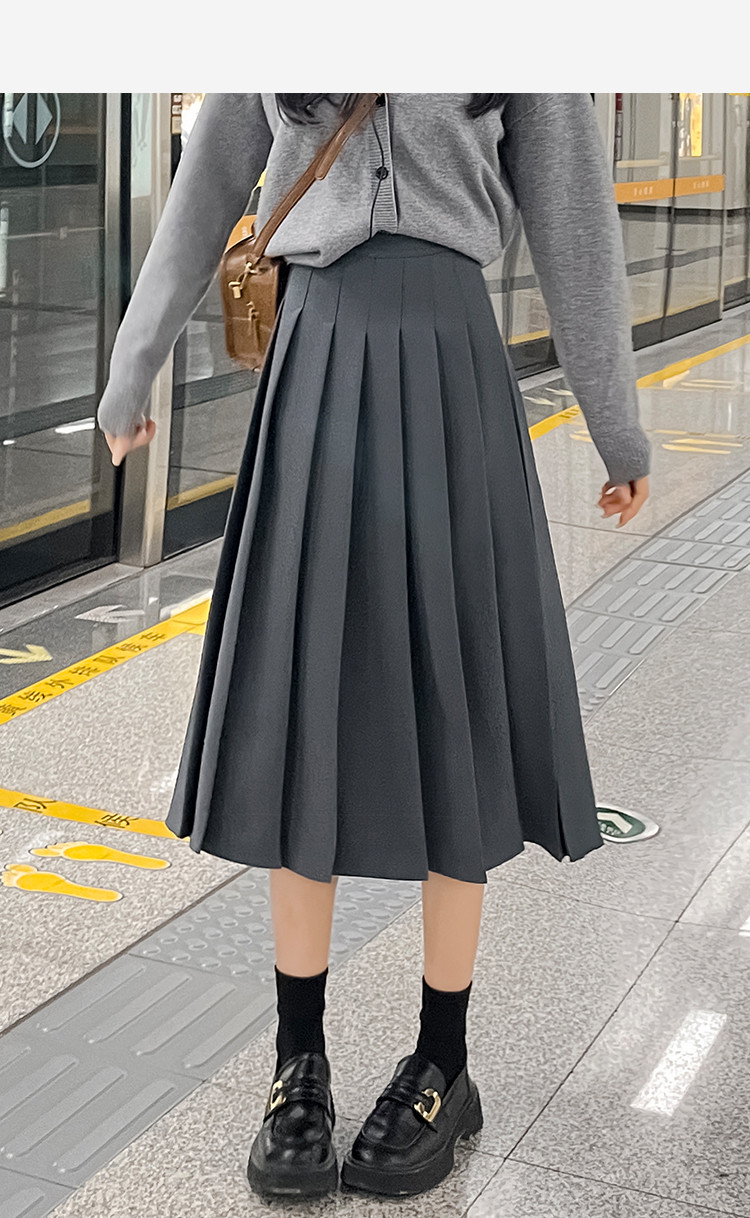 2024冬季女净色中长百褶裙简约气质减龄学院风百搭韩版休闲