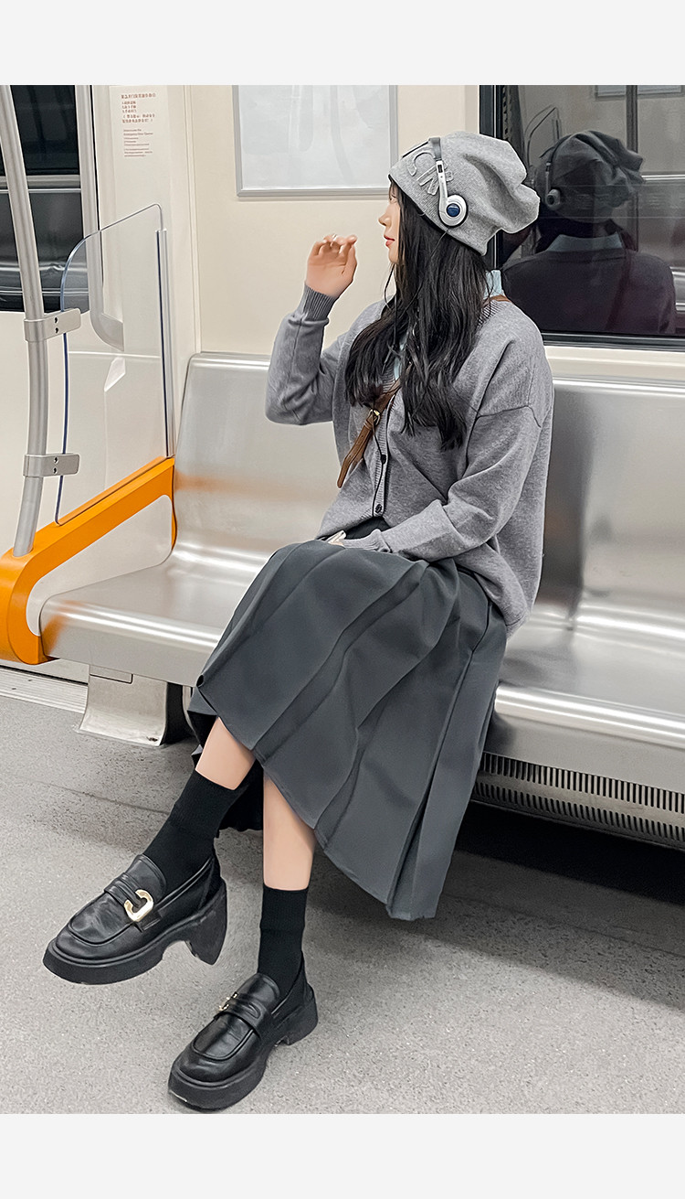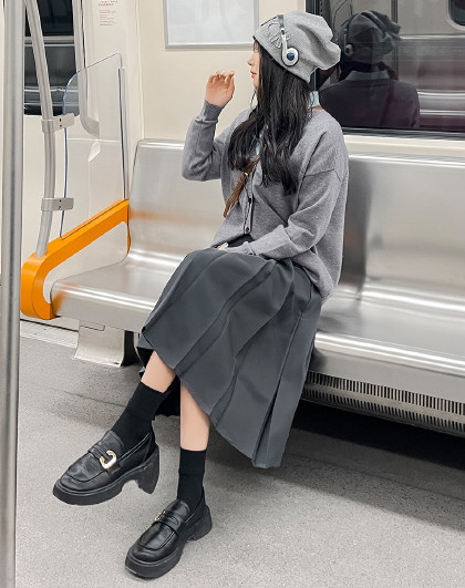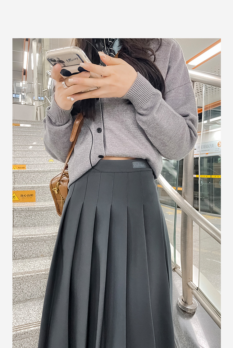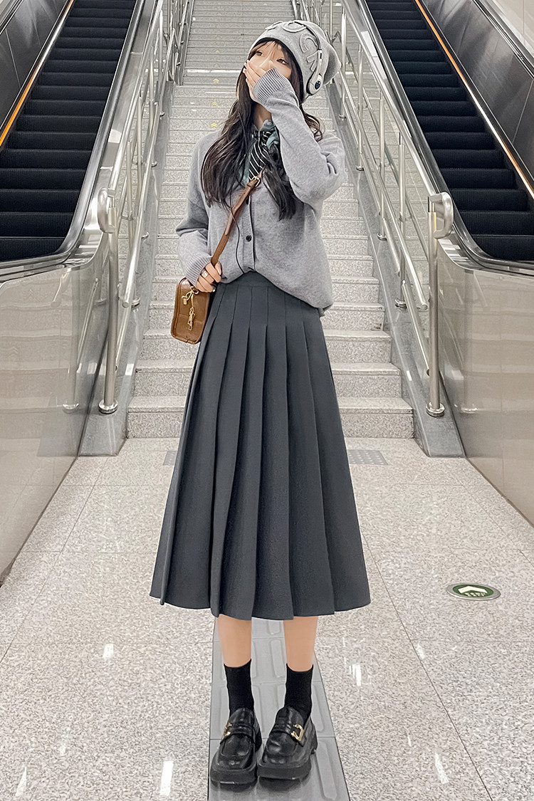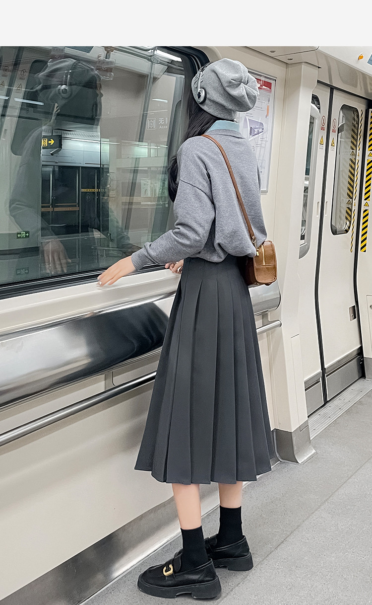 2024冬季女净色中长百褶裙简约气质减龄学院风百搭韩版休闲