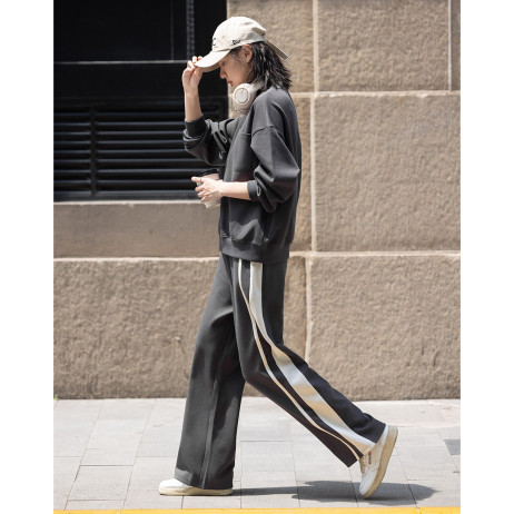 【砖灰色休闲套装】2024秋圆领贴袋卫衣+简约休闲裤女