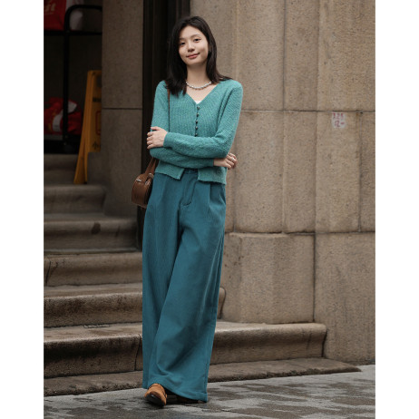 【V领针织衫】2024冬清爽蓝绿色舒适亲肤松弛感假门襟上衣女