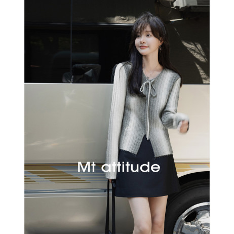 【懒人友好】2026春绵羊毛桑蚕丝混纺线衫假两件撞色披肩女式针织衫