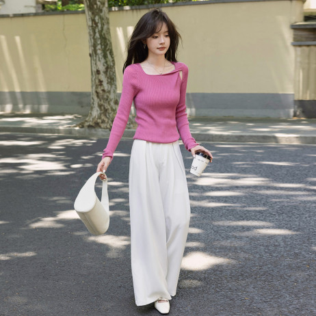 【法式气质通勤风】秋季款百搭设计感不规则扭结时尚套头长袖线衫