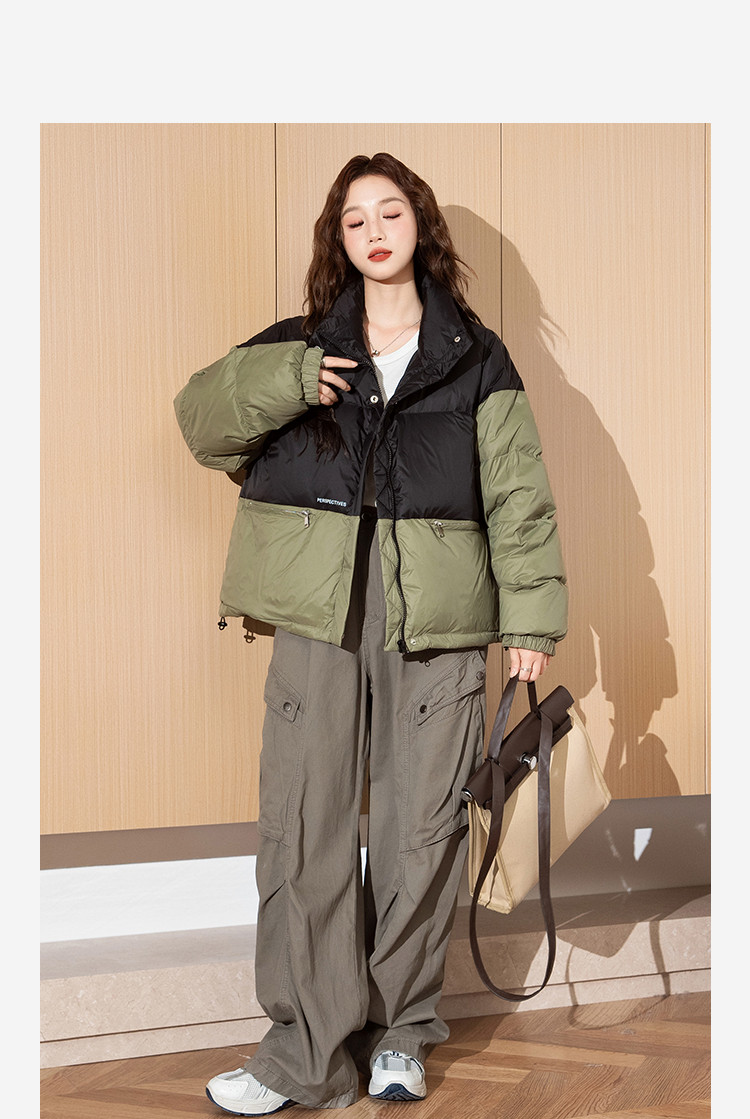 2024冬季女立领拼接短款羽绒服轻暖舒适休闲百搭外套
