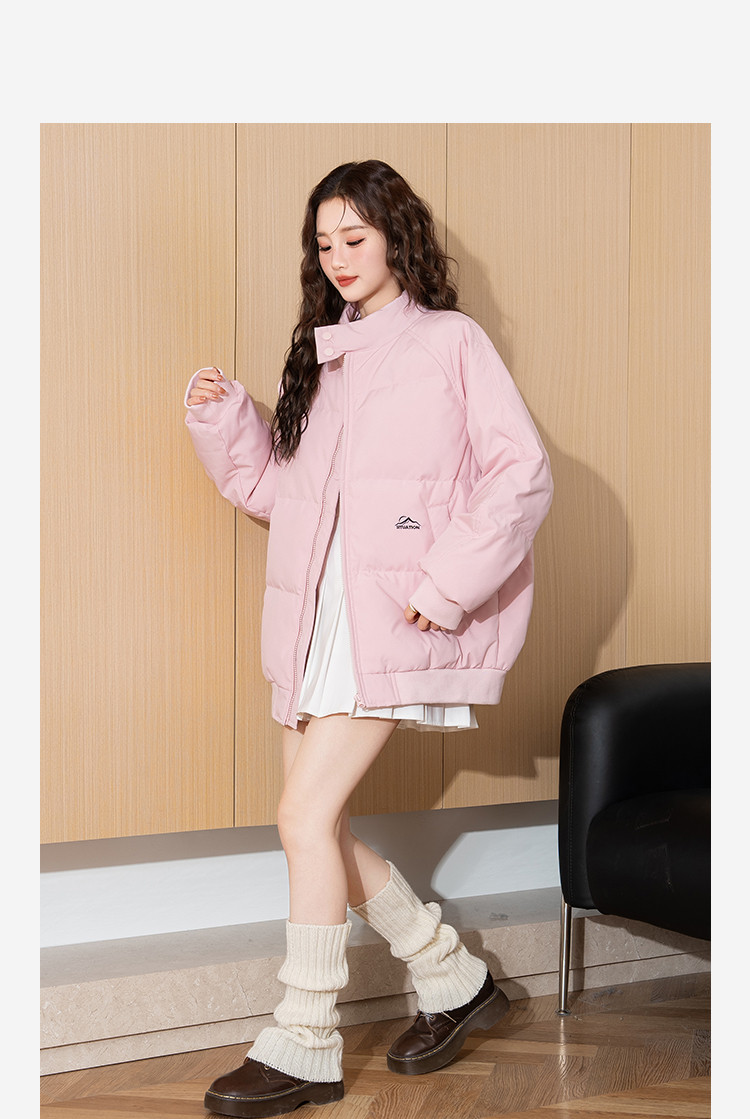 2024冬季女立领净色短款羽绒服简约百搭韩版休闲上衣减龄温柔