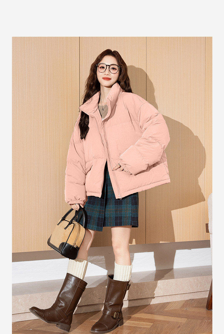 2024冬季女立领净色短款羽绒服简约韩版休闲温柔百搭时髦