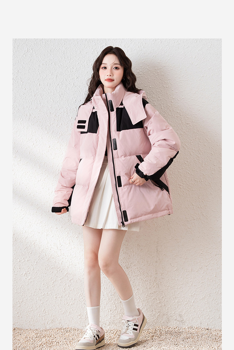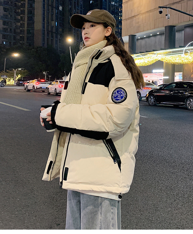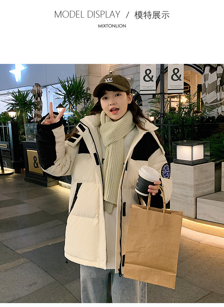 2024冬季女连帽拼接袖子带标羽绒服韩版休闲高级感百搭上衣潮