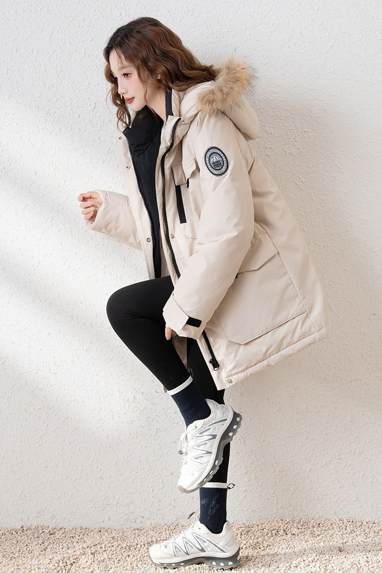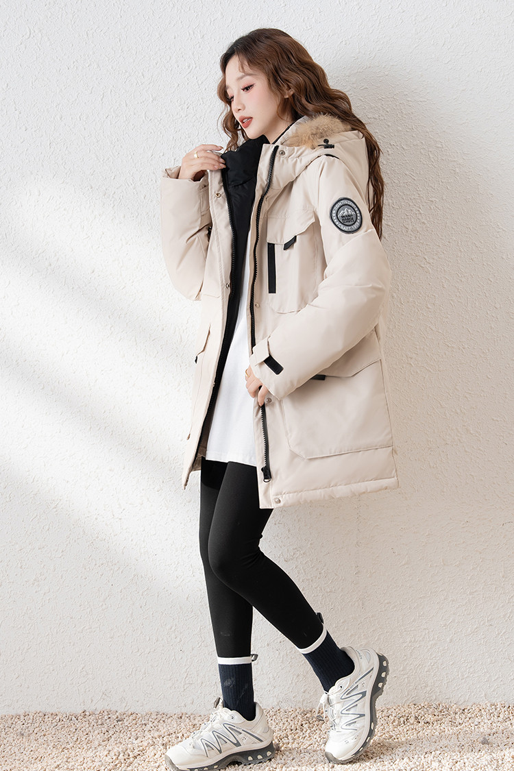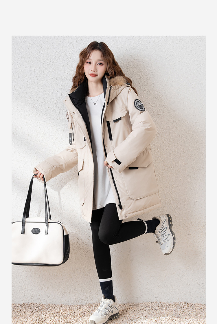 2024冬季女连帽毛领可脱卸工装羽绒服酷帅休闲风百搭高级感