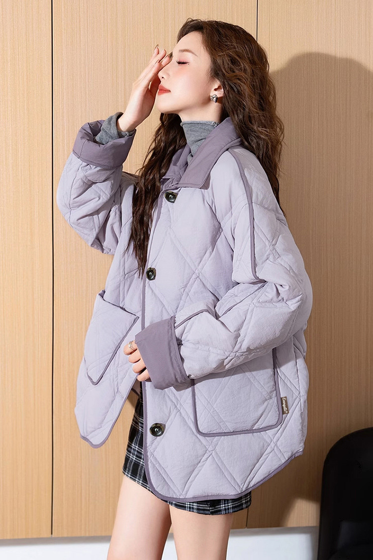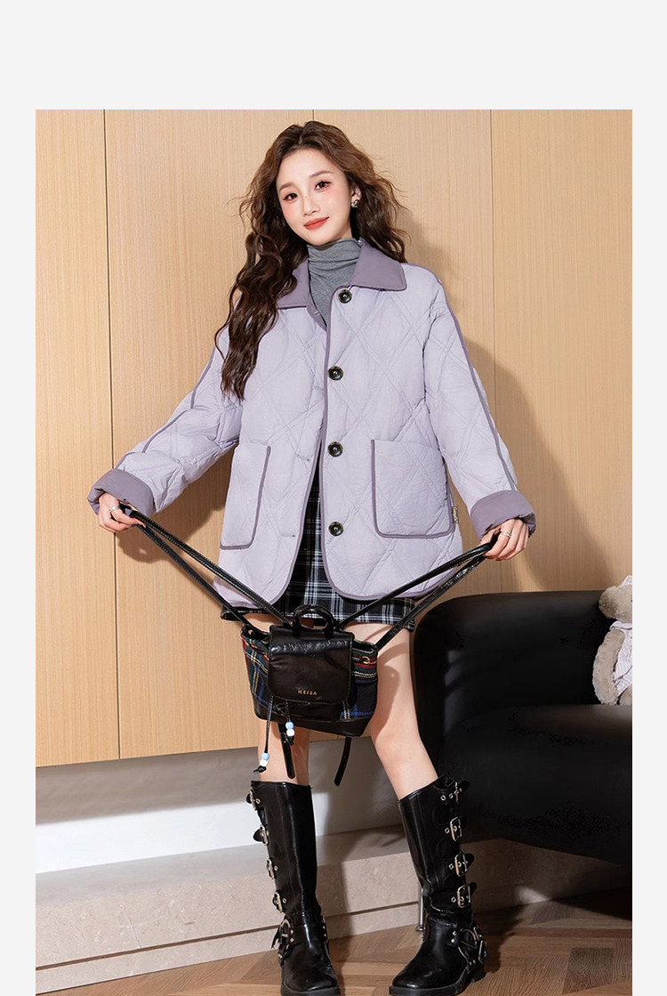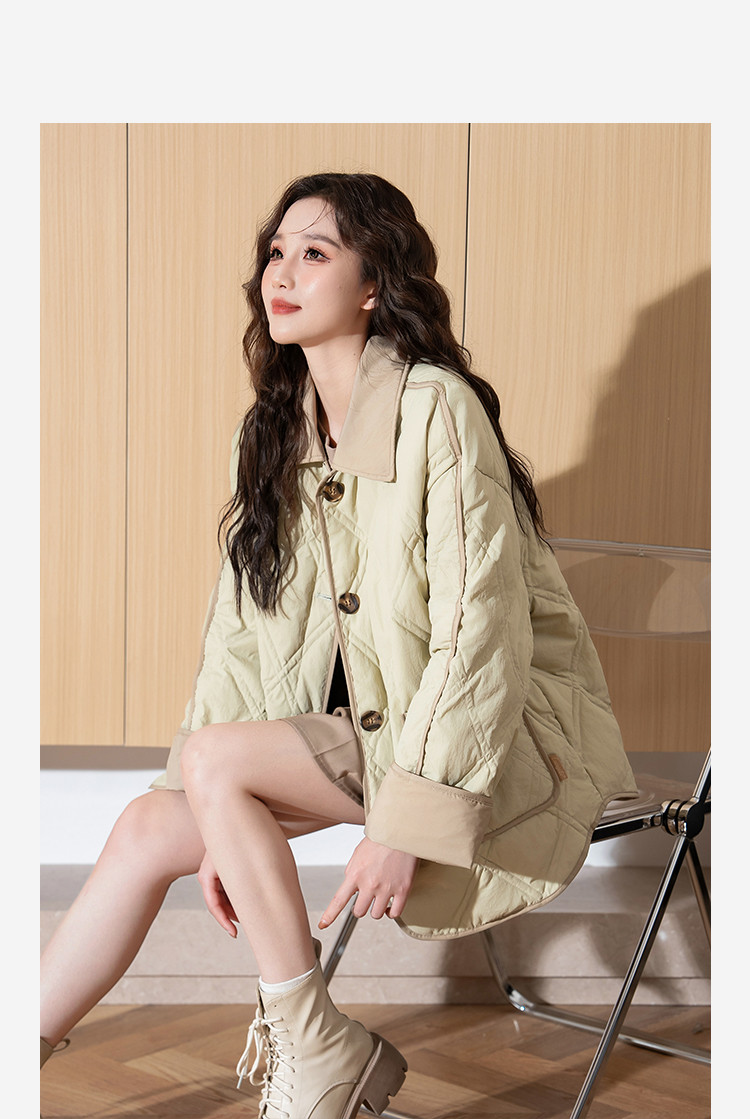 2024冬季女翻领撞色拼接羽绒服休闲减龄高级感百搭韩版时尚